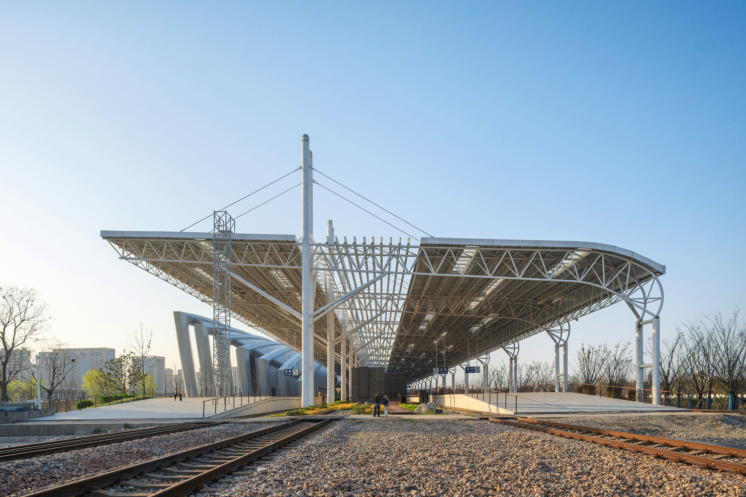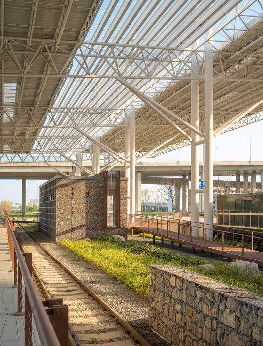 The deepest impression upon the initial site survey was the sense of desolation. The just-abandoned platform, with its steel columns, truss canopy, and rail elements, remained largely undamaged, as if expressing a reluctance to exit the historical stage. As part of the overall revitalization plan for the railway station area, surrounding facilities include the Wetlands Museum, Wetlands Park, a five-star hotel, and an international convention center. The Railway Park acts as a connector, closely linking these functional blocks to form a pedestrian landscape axis.