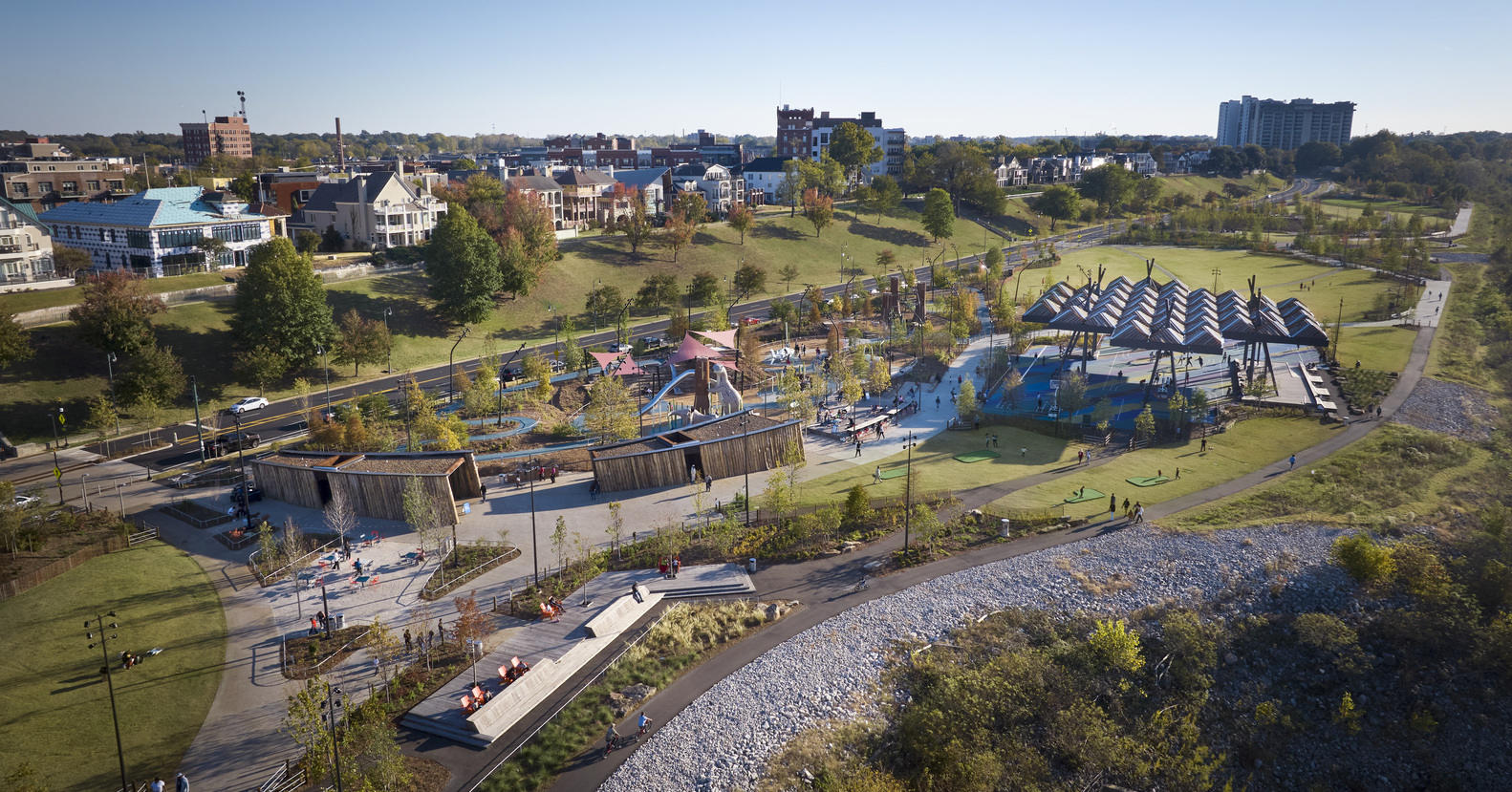 甘建筑事务所城市规划负责人吉娅·比亚吉(Gia Biagi)表示:“自项目启动之初,设计团队便以有意义且持续的方式吸纳社区参与,因此公园的规划充分反映了社区自身的理念与愿景。”这一耗资 6100 万美元的项目通过公私合作模式完成,资金来源于市、县、州和联邦政府,以及由本地和全国慈善机构、企业及个人组成的联合体。