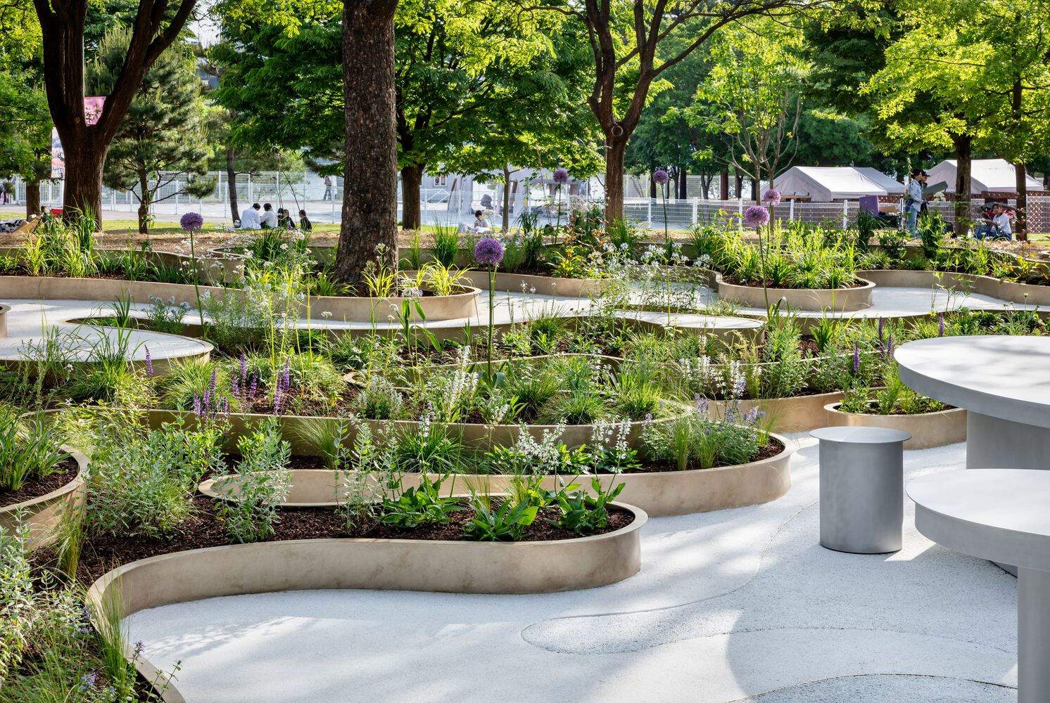 项目背景 - “沉浸式韧性花园”是韩国首尔的建筑师兼教授Changyeob Lee在伦敦超过10年的职业生涯后,在其家乡首尔建造的第一个公共领域项目。该项目是通过国际竞赛,由首尔市政府为2024年国际园艺博览会选定并建造的。该项目将在今年10月8日结束的官方活动之后继续存在。