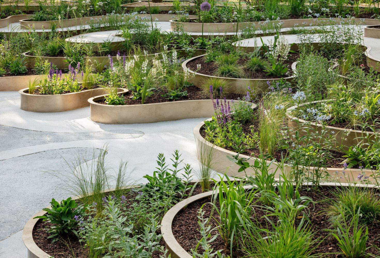 花园与可持续性 - 通过选择多年生植物种类,该项目在不依赖人工灌溉的情况下,全年提供多种自然景观,从而促进了可持续性。这种自我维持的生长支持了生物多样性,创造了更健康的微气候,并提高了繁忙城市地区居民的生活质量。