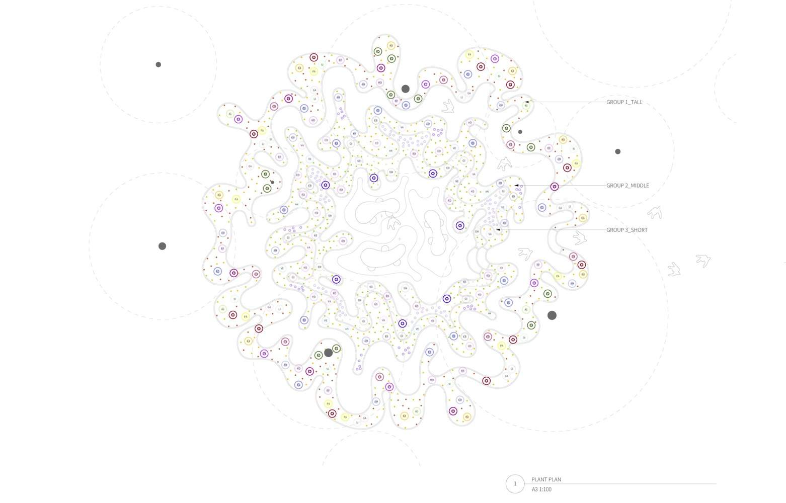 The garden is inspired by the spatial structures and interactions observed in nature, creating multi-layered, intimate spaces. By incorporating perennial plants and herbs that exhibit years of change, color, texture, and structure, these principles are applied at the human scale. The design evokes a symbiotic relationship between the natural and the artificial through continuous interaction across five layers spanning 400 meters, seamlessly integrating with the existing landscape.