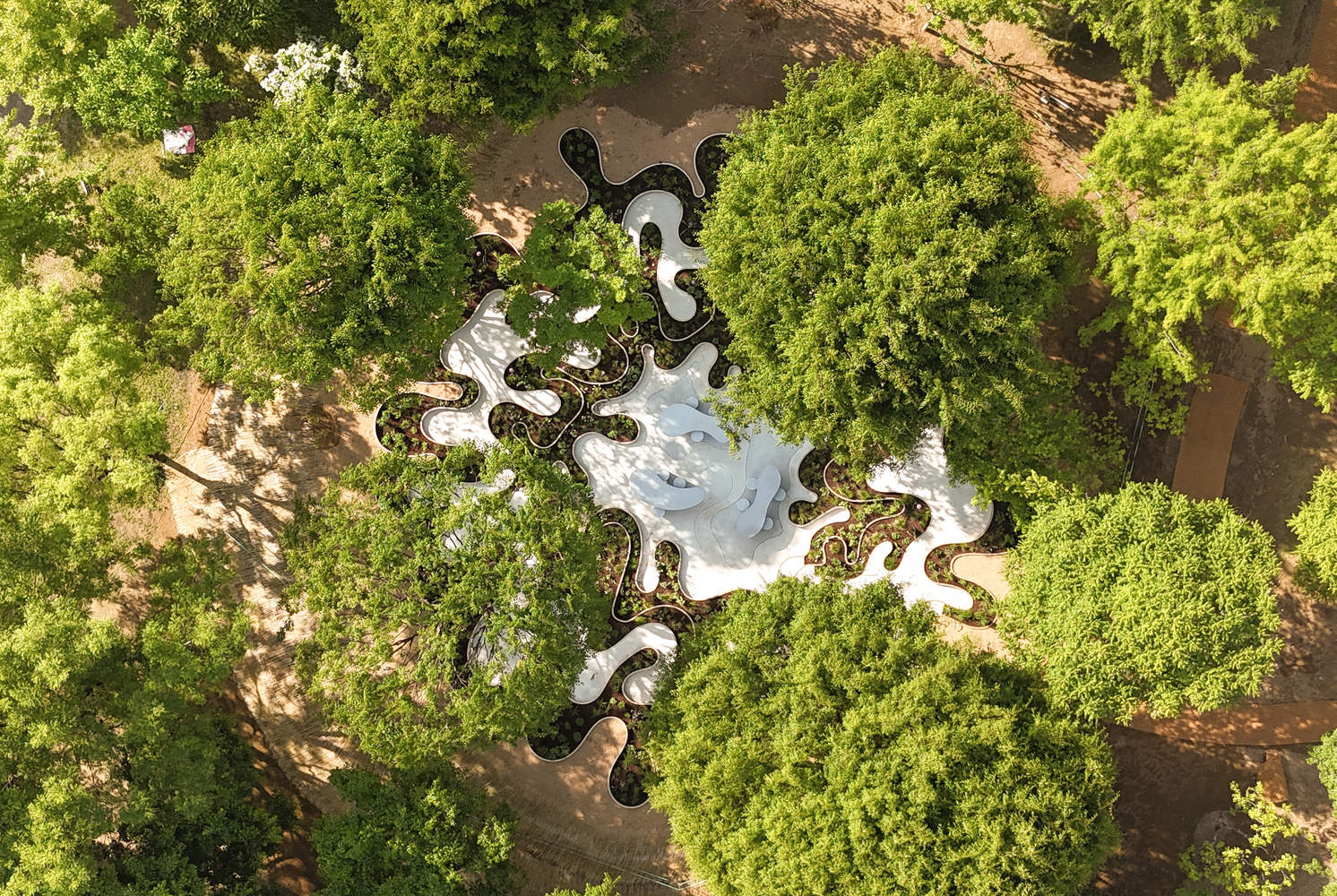 This project features a 250-square-meter immersive lounge-like space, designed to immerse visitors in a 360-degree natural experience within one of Seoul's busiest recreational areas, Ttukseom Hangang Park. This three-dimensional naturalistic garden enhances public engagement and provides a tranquil sanctuary where visitors can disconnect from the overstimulation of artificial visuals and reconnect with nature. The project is intended to be seen not merely as a static relic, but as a distinctive topography that guides plant thriving.