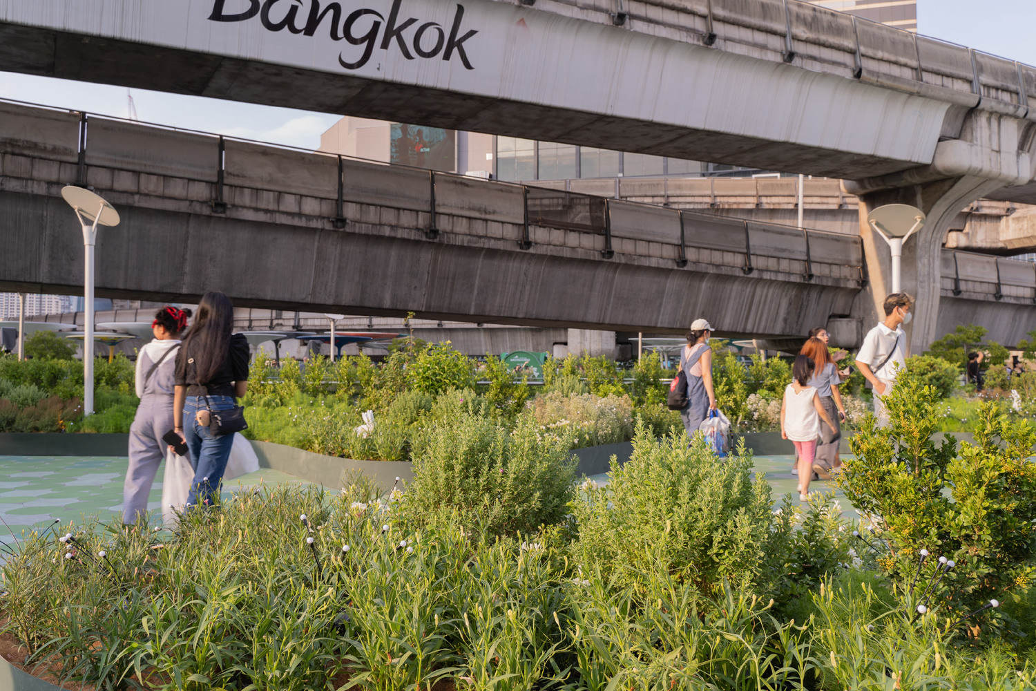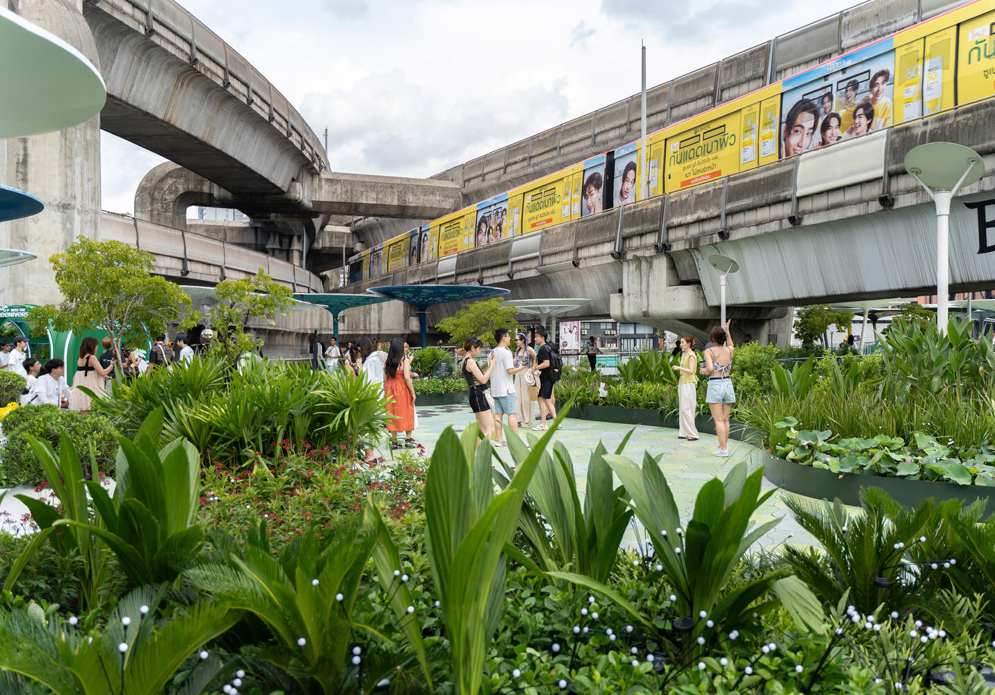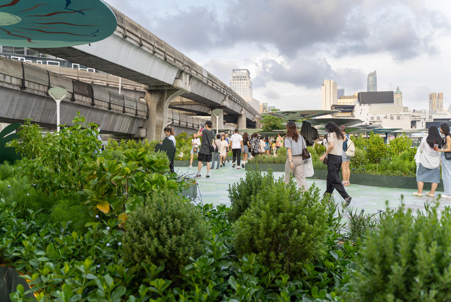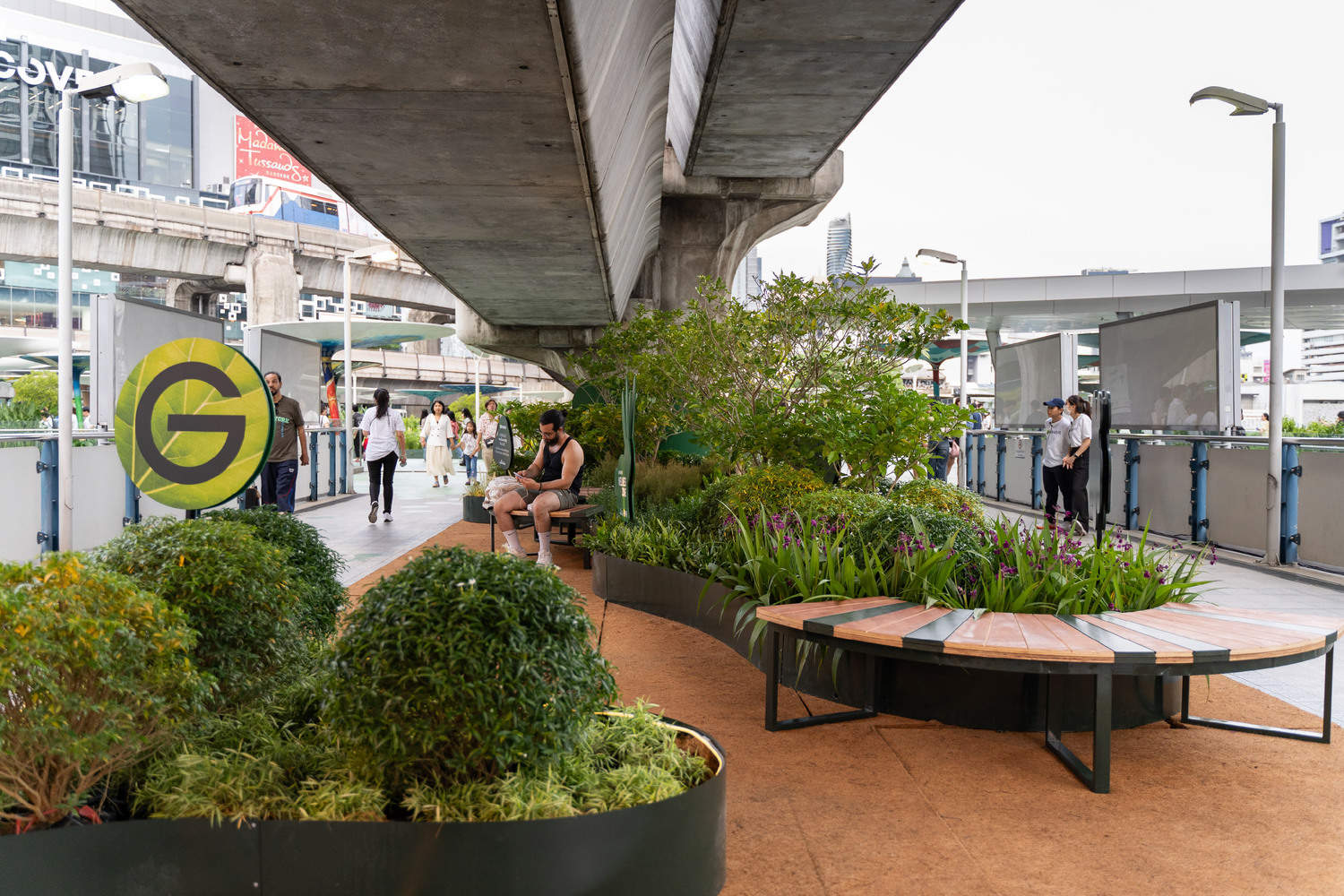 Shma, in collaboration with Garnier, a leading skincare brand in the natural beauty industry, and the Bangkok Metropolitan Administration, created a 550-square-meter park on the busy Pathumwan Skywalk. The project aims to demonstrate how green spaces can become part of our daily lives. This space has the potential to slow down the pace of life at this public transportation hub, provide a gathering place, and create a comfortable environment for passersby. This space is a prototype that can be adapted to other areas in the future.