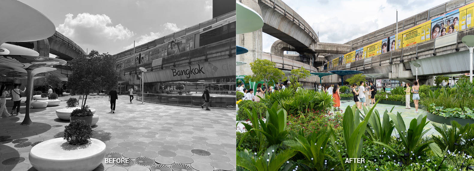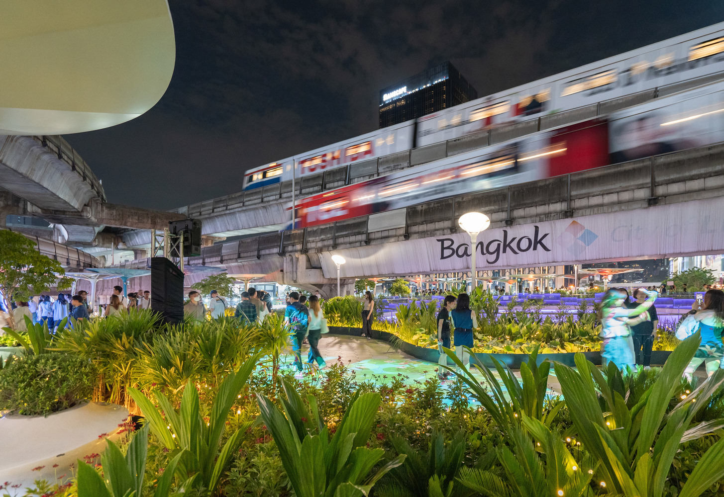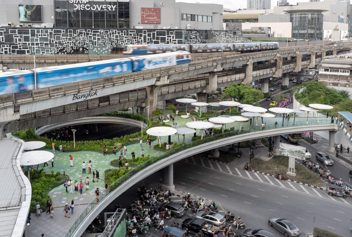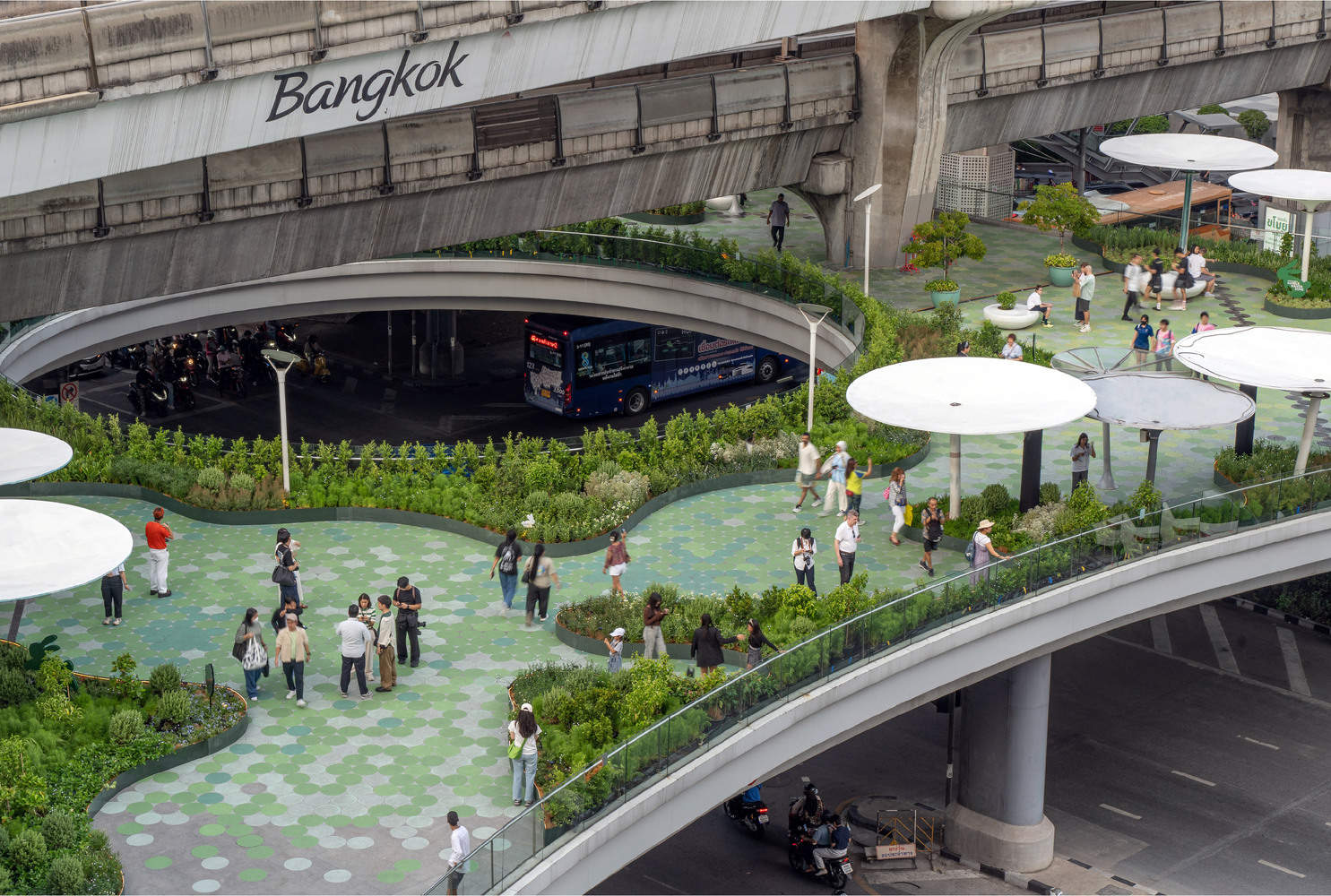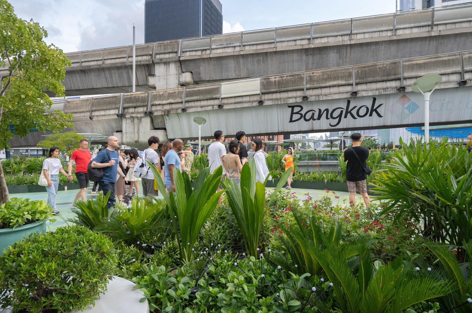 Shma, in collaboration with Garnier, a leading skincare brand in the natural beauty industry, and the Bangkok Metropolitan Administration, created a 550-square-meter park on the busy Pathumwan Skywalk. The project aims to demonstrate how green spaces can become part of our daily lives. This space has the potential to slow down the pace of life at this public transportation hub, provide a gathering place, and create a comfortable environment for passersby. This space is a prototype that can be adapted to other areas in the future.