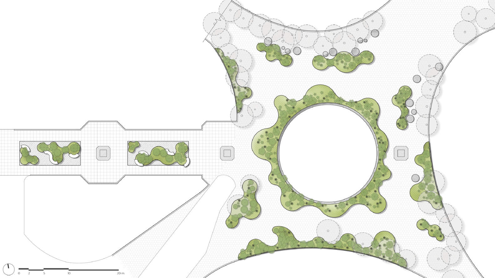 The landscape design of "Hop Park" is divided into five zones. Each zone is planted with approximately 20,000 trees, aiming to maximize green space utilization and fully enhance the user experience.
