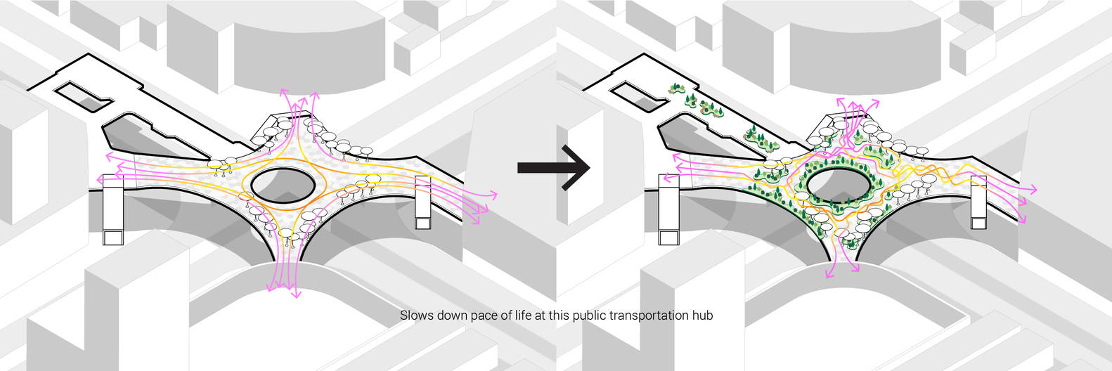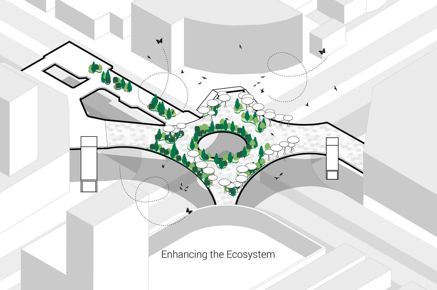 “Hop Park” is a green space project that can be quickly built with low maintenance costs and minimal alteration to the existing structure. This space can flexibly adapt to different areas while solving problems that arise in cities.