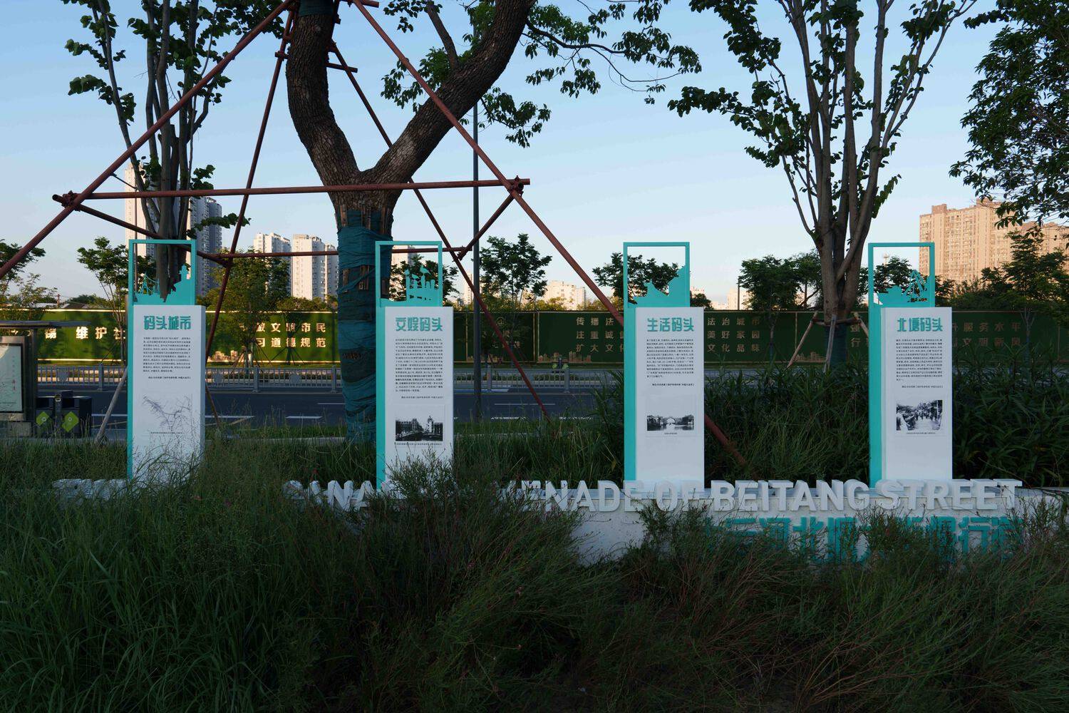 At the same time, the Grand Canal carries a rich historical and cultural heritage, producing a number of historical figures whose glory endures. Materials such as poems, songs, historical events, cultural relics, local customs, and administrative systems along the canal are excavated and sorted to serve as important content for cultural display. This project uses diversified signage for interpretation and presentation.