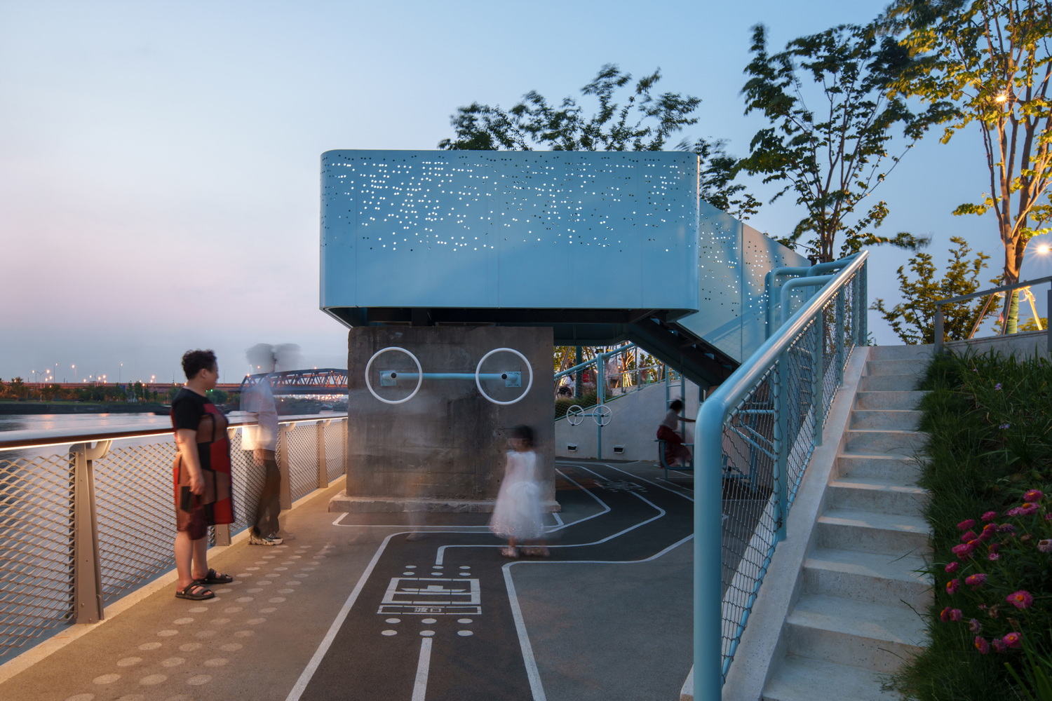 - Waterfront Fitness Plaza and Children's Play Area: In the narrower linear spaces in the middle section, small fitness and children's spaces are retained and newly added as much as possible.