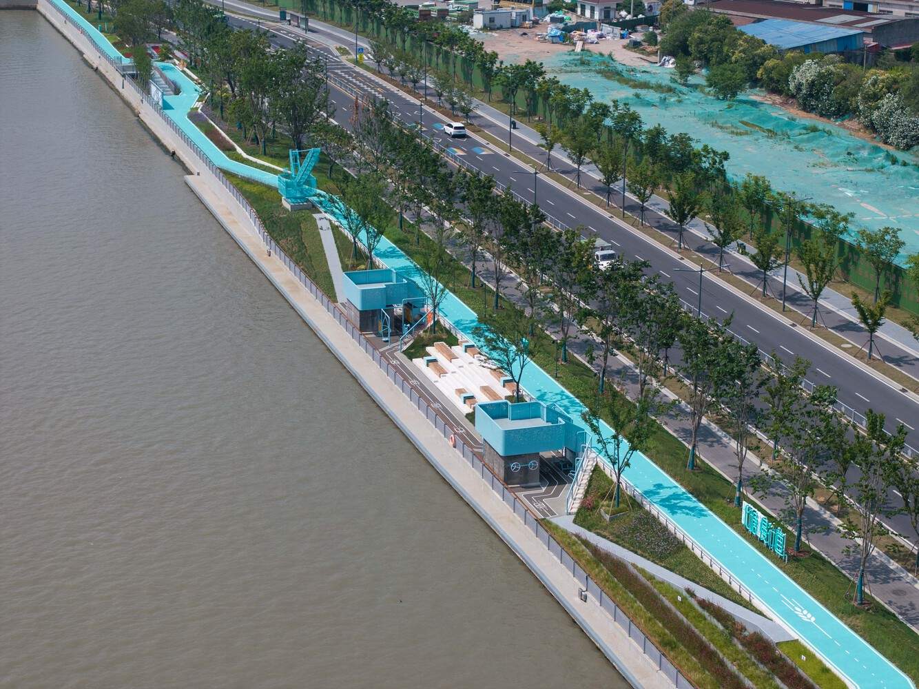 No Break – Connectivity in Limited Space: At municipal water conservancy building nodes, the effective width for passage along the water was only 1.1 meters. The design elevates the path to the top of the flood control wall, utilizing the wall's own 0.5-meter thickness to expand the traversable width, ensuring the comfort of the waterfront pedestrian space.