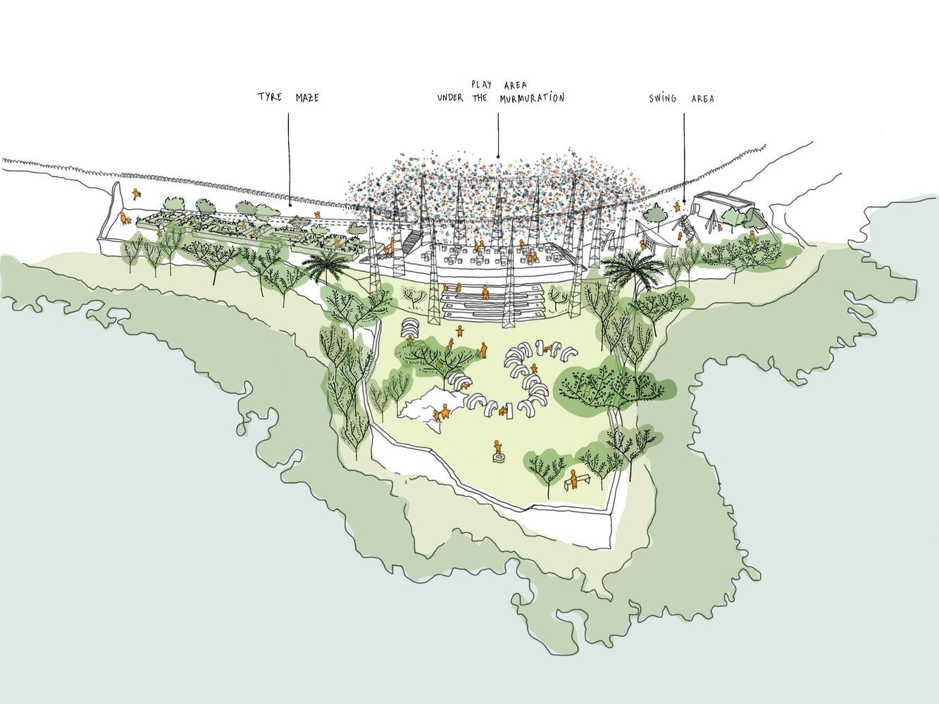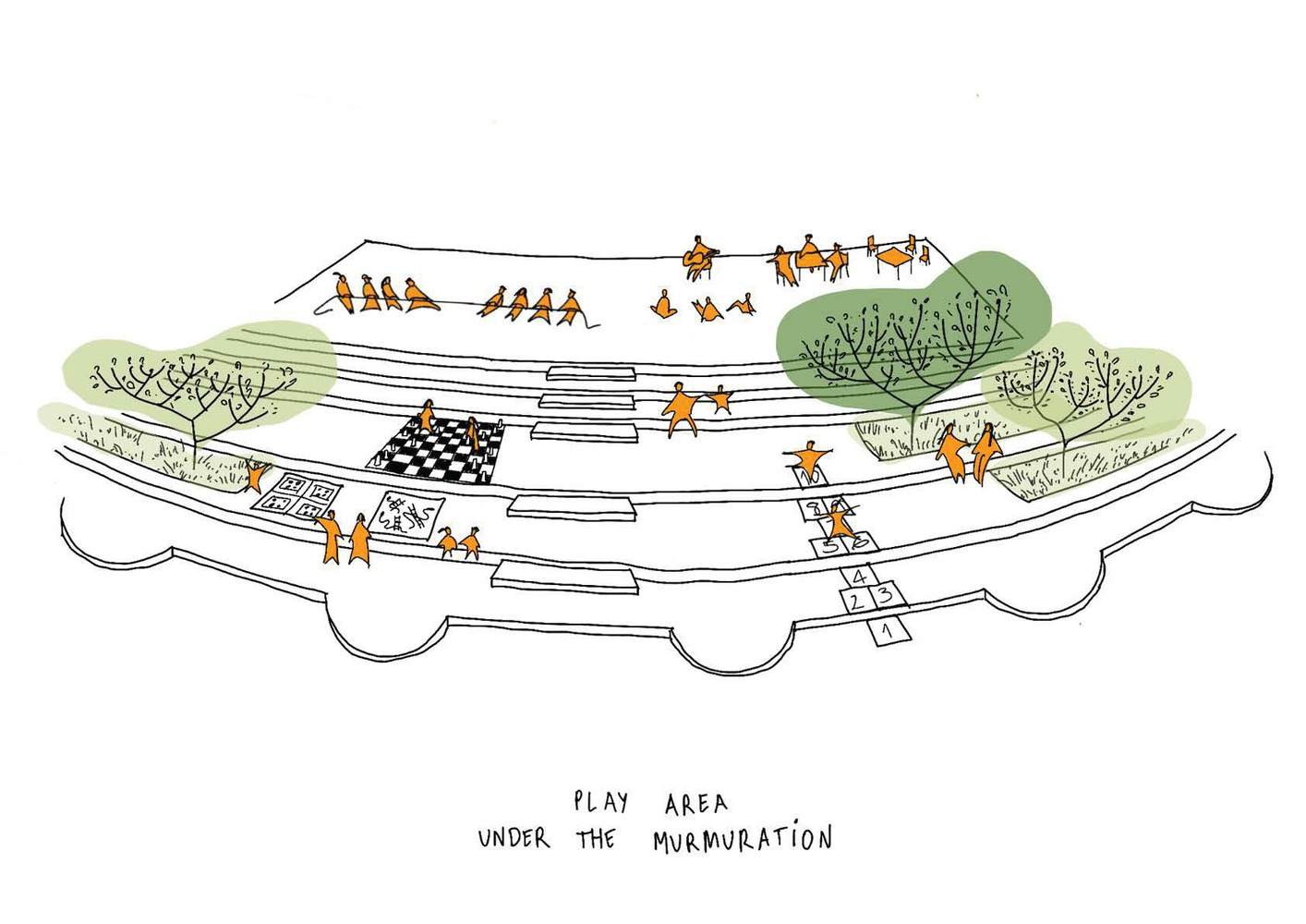 Udaan 公园现在的特色是当地种植的本土植物,由开花植物、药草和小树组成的无障碍迷宫,以及一个使用当地回收和再利用材料的儿童游乐场。场地的中心是一个吸引人的遮阳顶棚,其灵感来自于该地区经常出现的引人注目的椋鸟杂音。在树桁架结构的支撑下,一个由可回收塑料制成的由 34000 只栩栩如生的小鸟组成的遮阳篷,是一个引人入胜的焦点,同时还为下面的座椅和游戏区提供了遮阳。