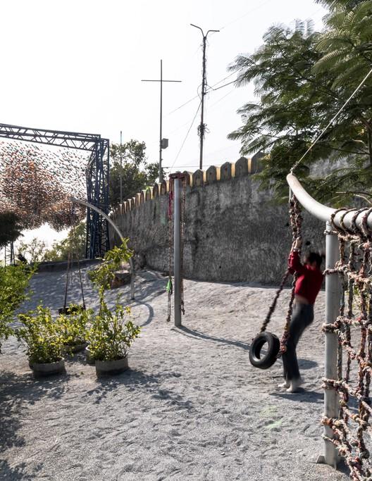 新的公共空间是年轻人和老年人的天堂。生日派对在这里司空见惯;这里已经被那些破坏这里的年轻人所接纳。现在,他们都自愿参与到这里的维护工作中来。该项目重新利用了现场现有的材料,为整个城市创造性地重新利用和再利用材料开创了先例。回收的轮胎被用作花盆、秋千、游乐隧道和入口迷宫,而回收的纱丽织物则被用作儿童游乐区的秋千绳索。所有非结构性金属制品,从大门、围栏、栏杆到公园的部分顶篷,都是用回收的钢筋制成的。