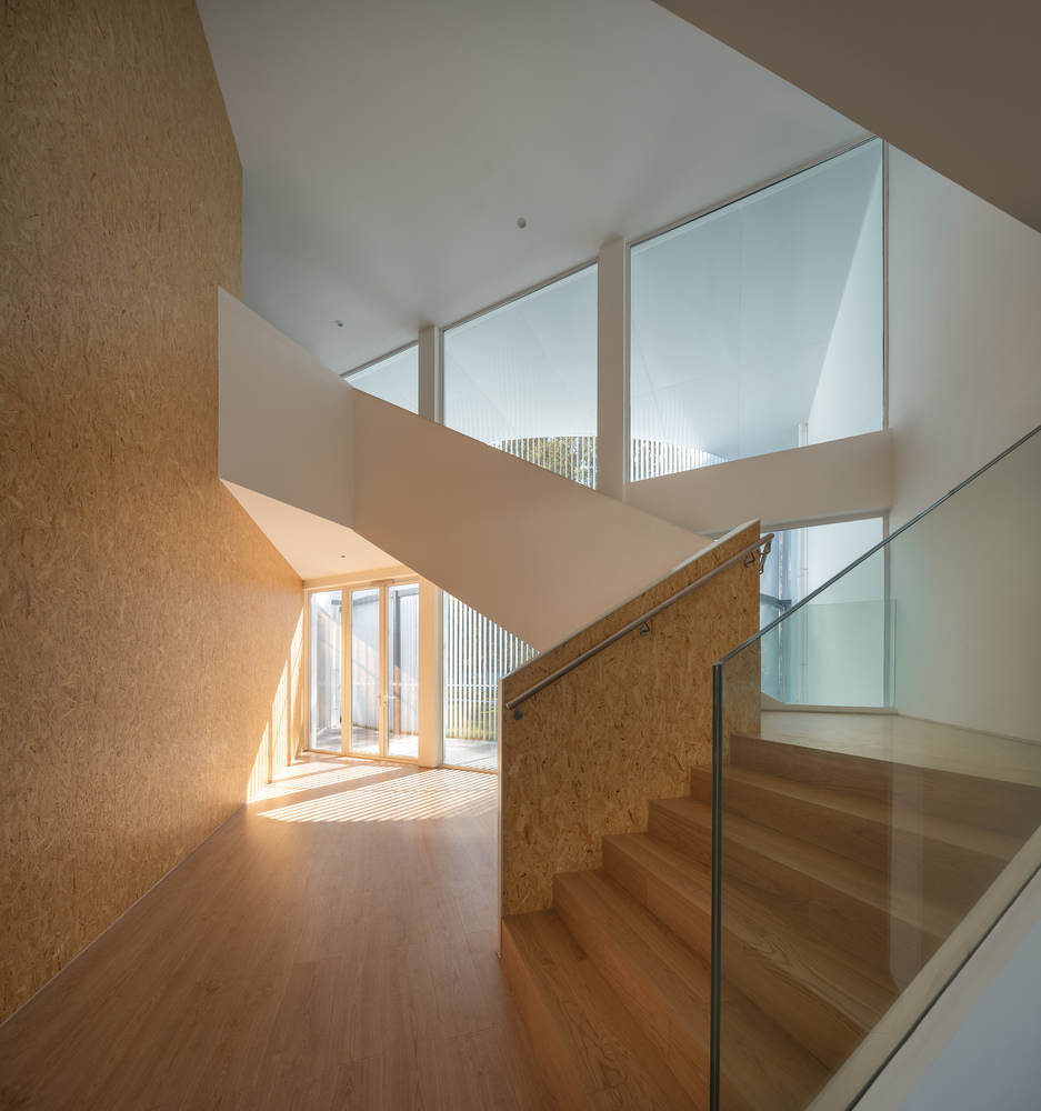 身处公园环境之中,建筑在主要展厅、会议、办公空间里设置了大比例窗洞让生态景观和自然光线最大程度地渗透进室内空间。斜角交错的不同结构单元之间形成与外部景观相互动的入口序厅、楼梯间、半户外庭院等交流空间。
