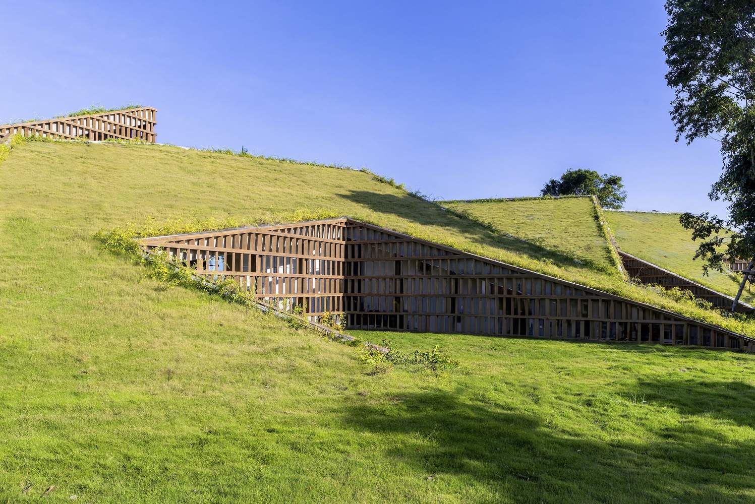 人与自然共生的设计哲学:该项目成功的核心在于其对自然环境的深刻尊重和有机融合。设计师将投资者的自然情怀转化为设计语言,致力于使建筑成为郁郁葱葱景观中不可或缺的一部分。项目通过巧妙的场地策略,模糊了建筑与自然之间的界限,提出了在城市复杂功能与公共服务设施需求下,如何实现建筑“隐形”并与主要交通轴线无缝结合的挑战性目标,体现了高度的场所精神和可持续的共生设计哲学。