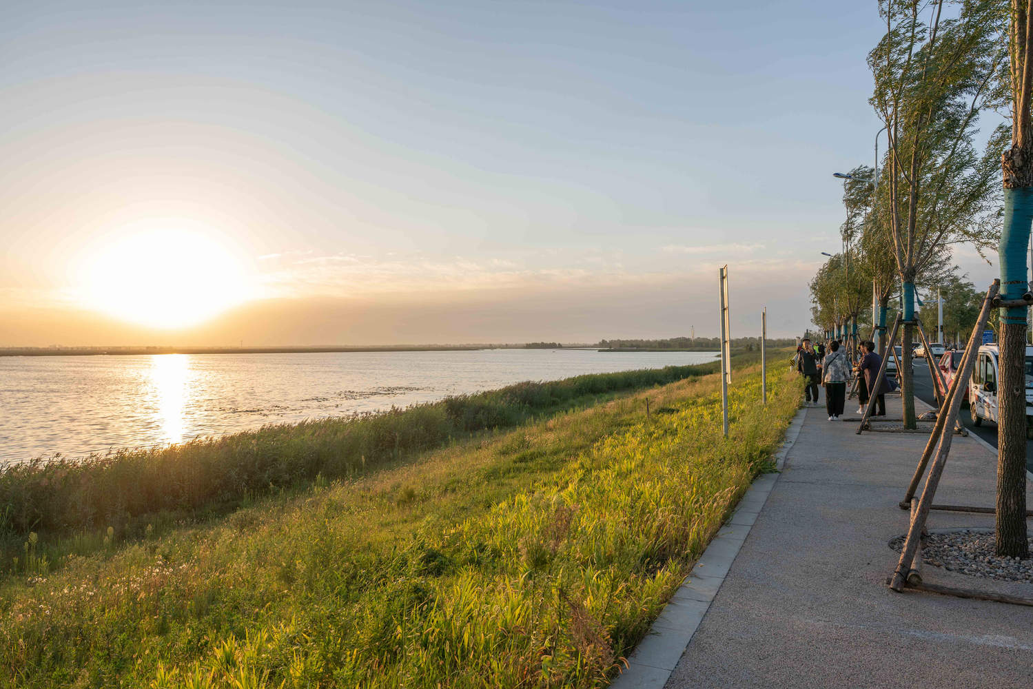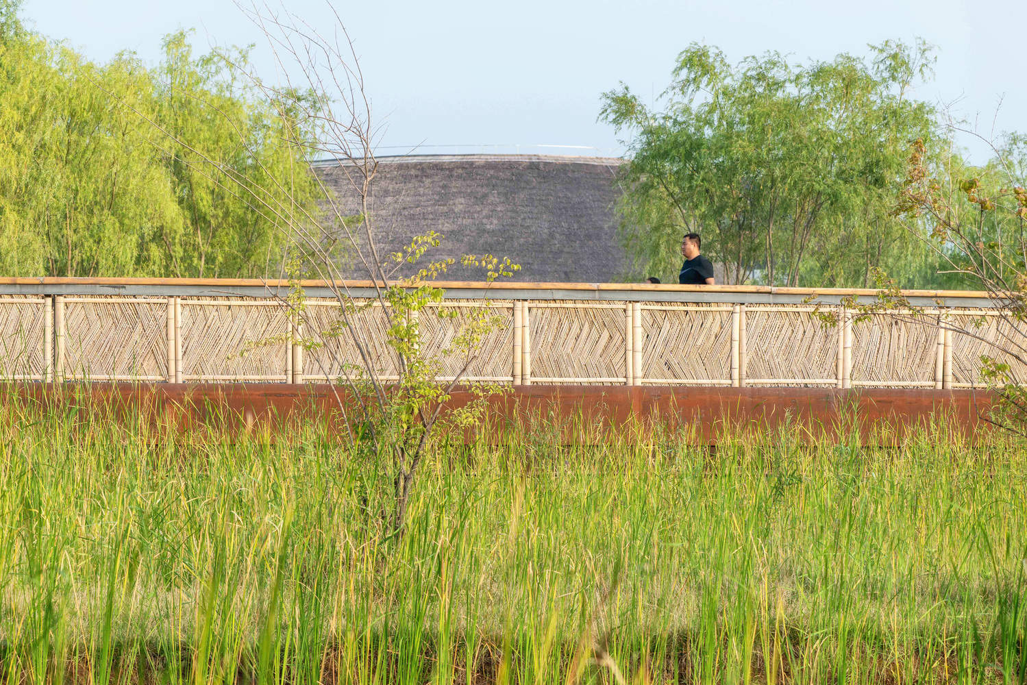 The new Baiyangdian Waterfront Park opened to the public last year, featuring a series of reed-roofed pavilions filled with exhibits and historical demonstrations. The landscape surrounding the buildings is composed of a "Miniature Baiyangdian" vitality zone and a series of characteristic landscape bridges, which concentrate the display of Baiyangdian's "dike enclosure," "ecological embankment," and "reed marsh" reed weaving art. This serves as a "preview" for tourists before they enter the lake area by boat, allowing them to browse all the ecological scenes and key species of the Baiyangdian area in advance. The ecological embankment and wharf project is the first natural system project for public open space in Xiongan, powerfully demonstrating the primary principles of the new city's ecological priority and construction.
