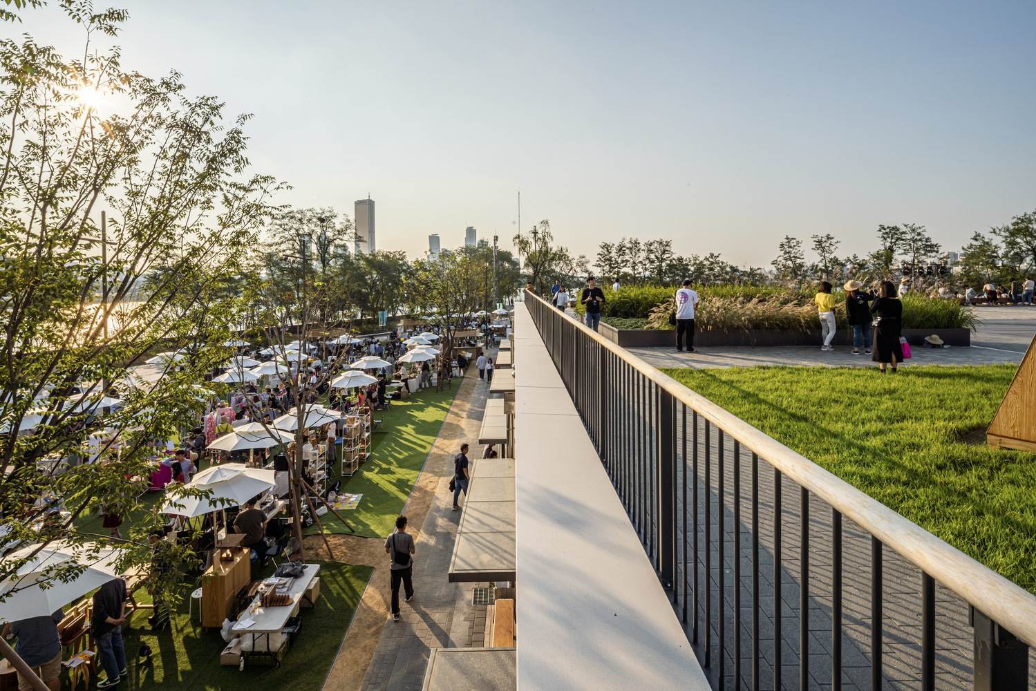 遗址激活与城市韧性:该项目成功地将一座被遗弃的汉江人工岛屿,通过精巧的地形重塑和多层次的空间设计,转化为一个充满活力的城市公共空间。其核心精髓在于对“被遗忘”历史资产的再生,通过引入文化、创意和社交功能,使孤立的岛屿重新融入城市肌理,展现了城市设计在激活滨水空间和提升城市韧性方面的典范作用。