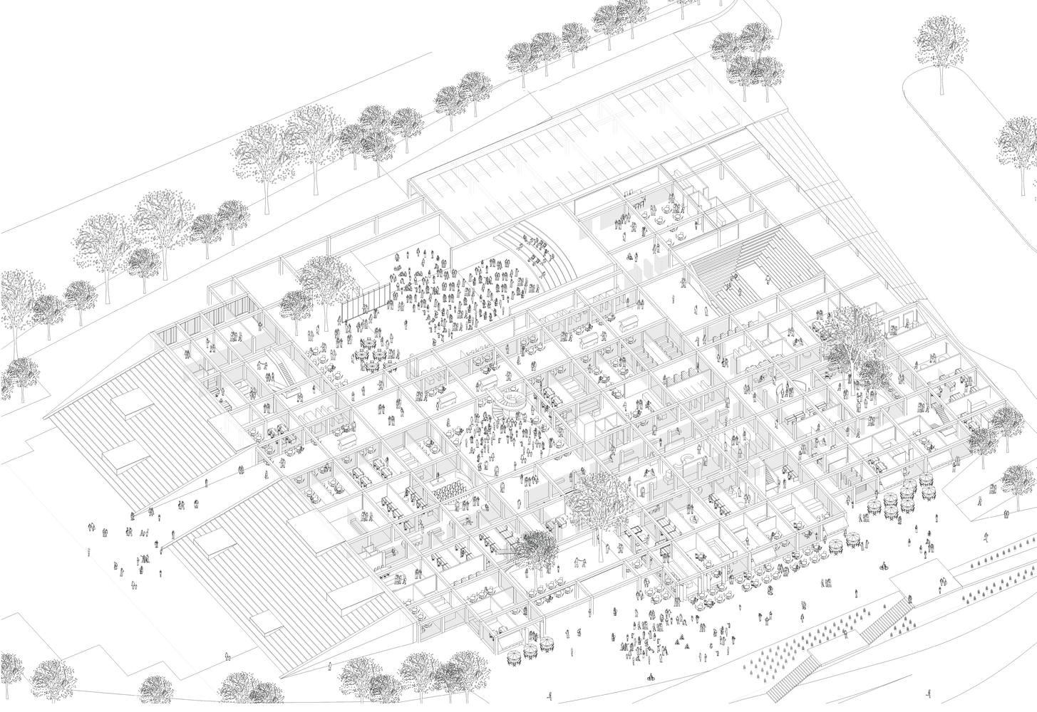 弩督岛被分为两个主要的层级:原有的地面层提供了多种文化与创意场所,而上层平台 (与现存的大桥齐平) 则提供了灵活的公共广场与观景平台。办公室、商店、画廊、一个书店、一个多功能厅与一个可容纳 450 人的剧场被整合安排至村庄般的环境中,形成了一个不同项目与用户群体和谐共处的小社区。岛上的景观还给游客以一种公园般的,丰富的社交体验。这种全新的、富有活力的,社区驱动的类型学为新老游客创造了无限可能,建立了一个充满历史底蕴与无限潜能的场所。