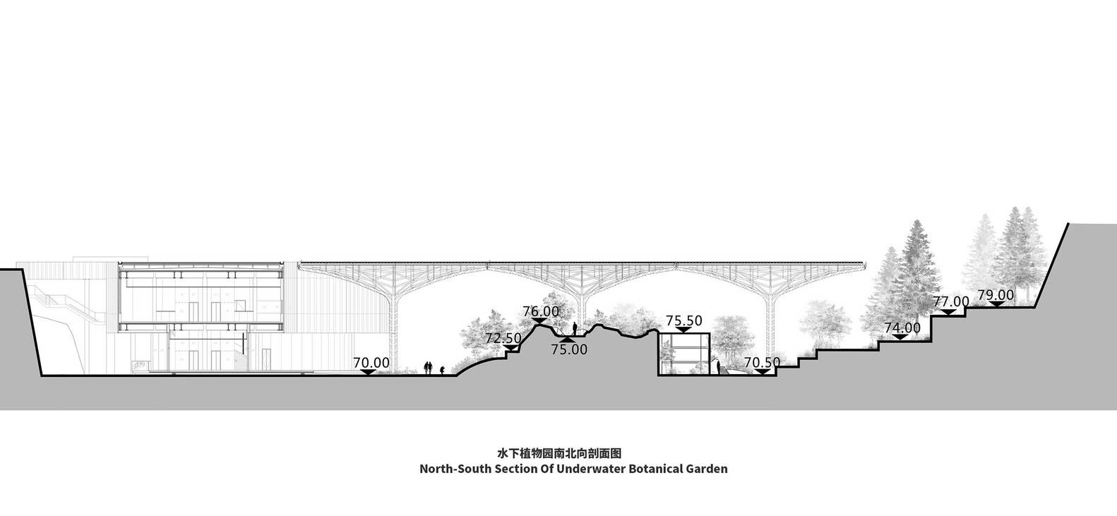 中生花园通过创造起伏的丘陵、幽深的峡谷、陡峭的岩石,产生了丰富的空间变化,为不同植物创造了合适的生长环境。