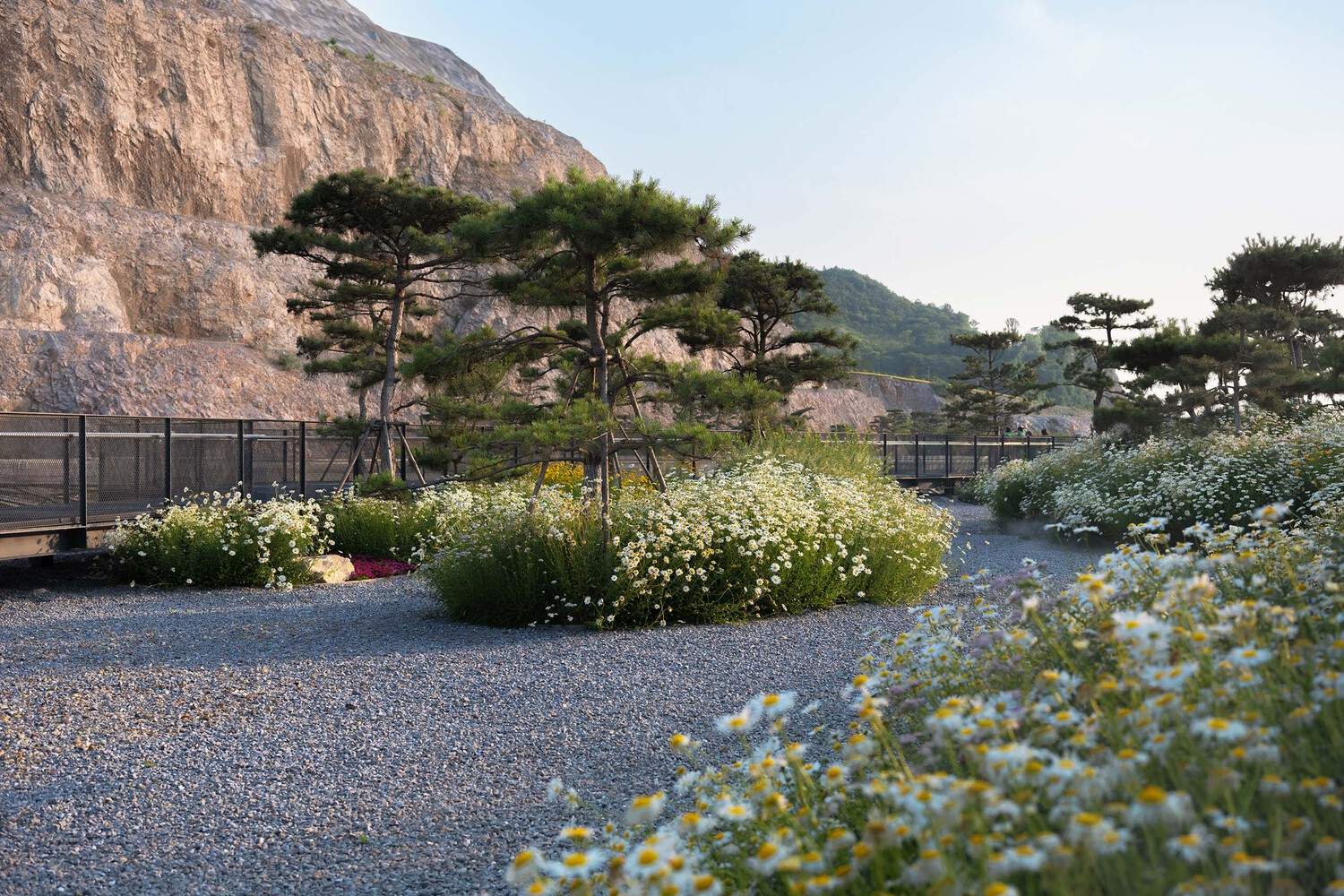 为了保留原采石场的记忆,迷雾花园采用了局部修复的方法,只在一系列散布的岛状区域内恢复植被,其余地方保持采石迹地表面的砾石。