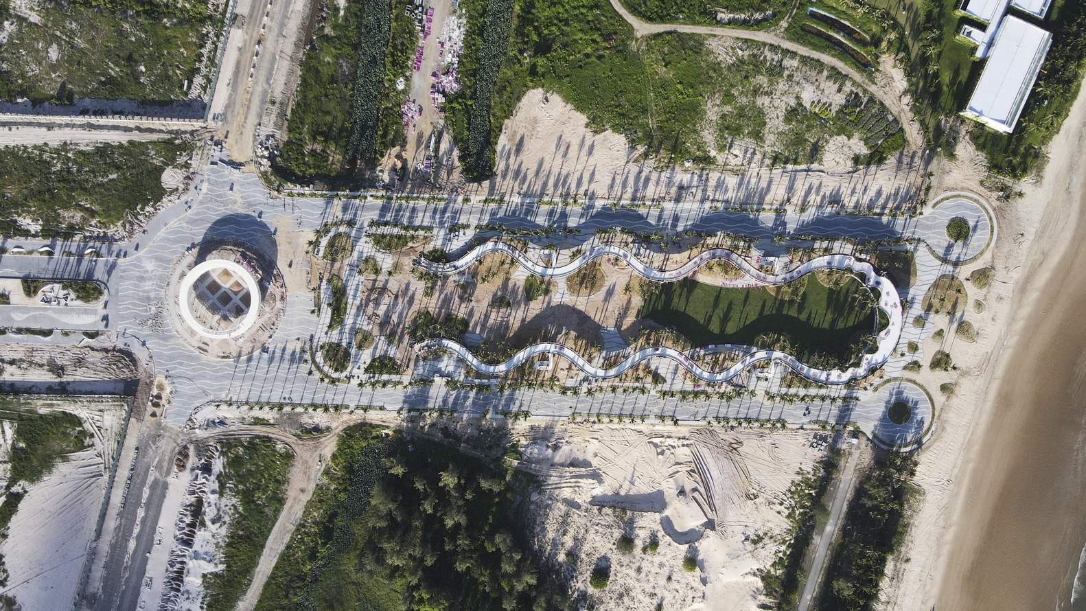 From a pristine wasteland, the plaza connects people and nature. Visitors can stroll on the vast sandy area, touch the green coconut leaves, capture the picturesque beauty of the bay up close, and even touch the "starry sky."