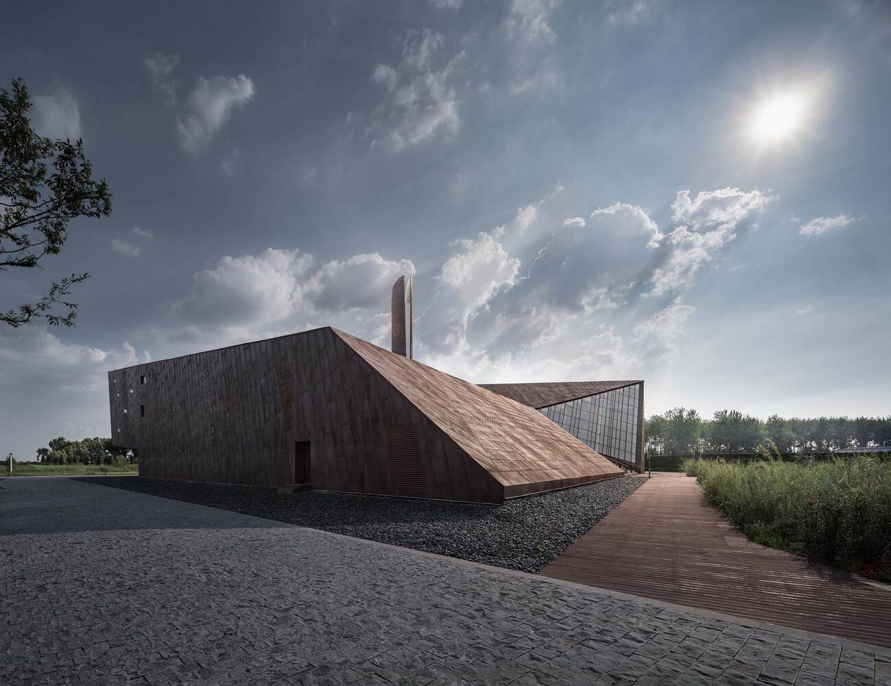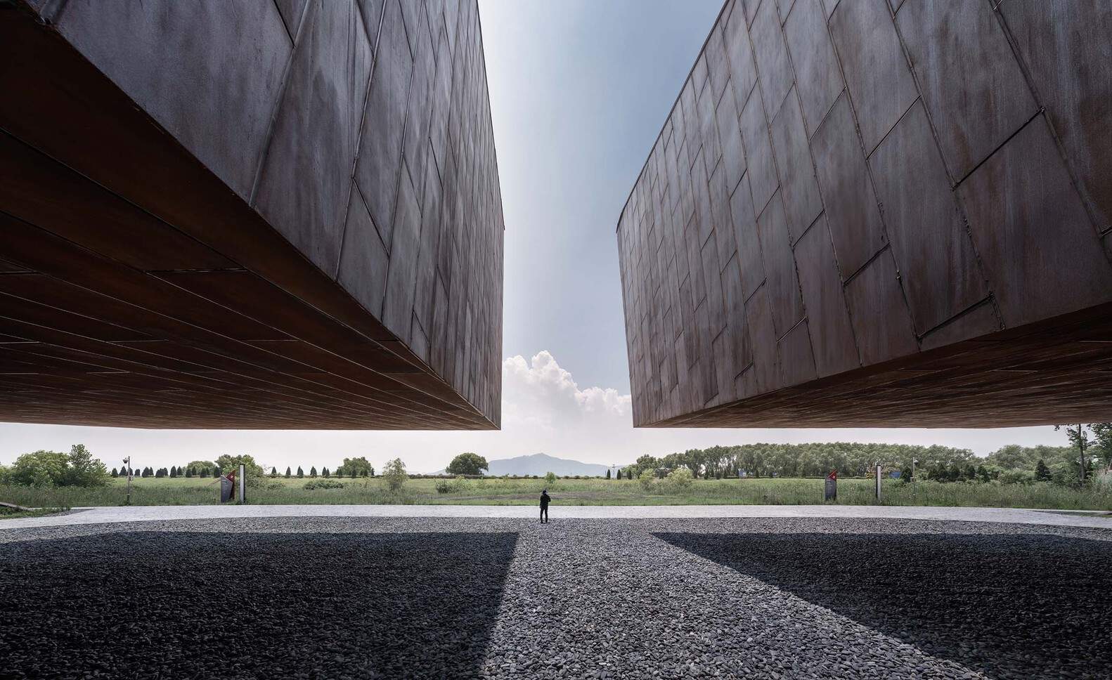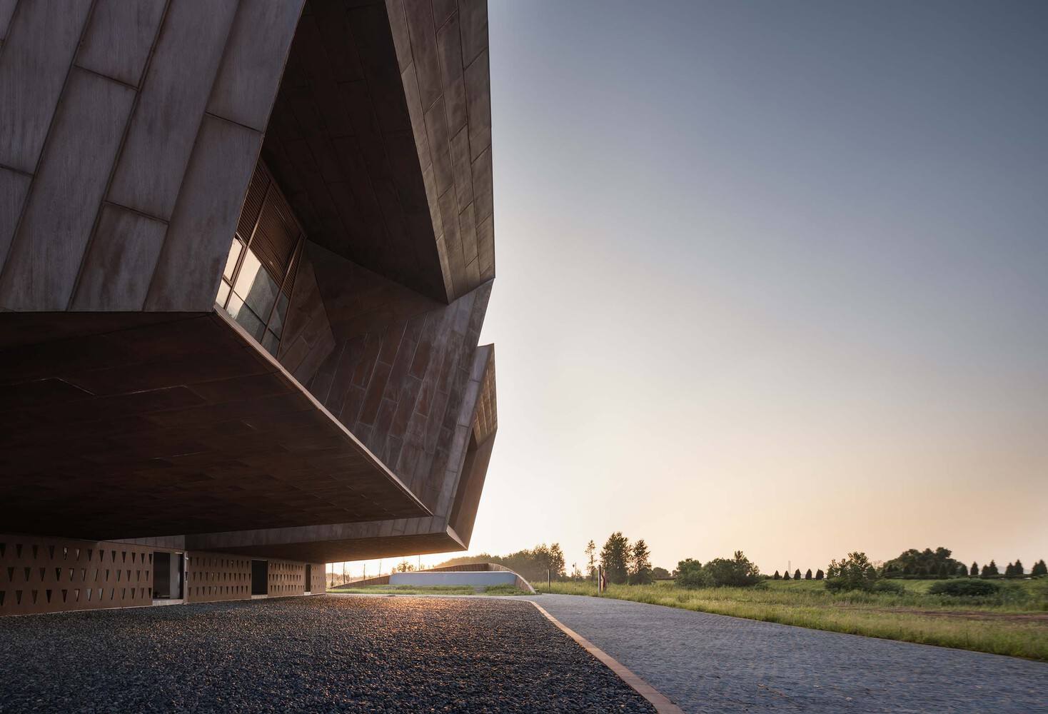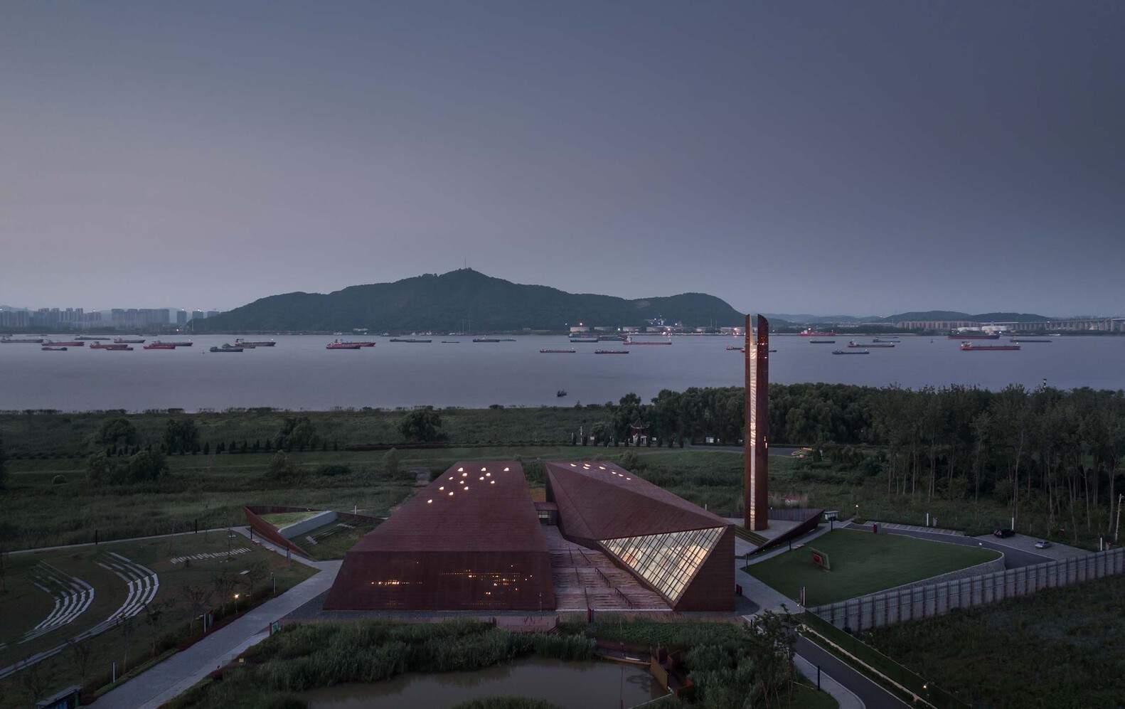 The memorial hall adopts the design strategy of "cultivating the earth," causing the ground to split open and the building to slowly rise from the ground, presenting a trend of being lower in the north and higher in the south, charging forward, resembling a wooden boat advancing towards Qixia Mountain, rushing straight to the river surface, symbolizing the boat of victory, the boat of the people, and the boat of great rejuvenation. The form design responds to Chairman Xi’s emphasis during his inspection of the Memorial Hall of the Yangtze River Crossing Campaign in Hefei: "The victory of the Yangtze River Crossing Campaign was rowed out by the common people in small boats."