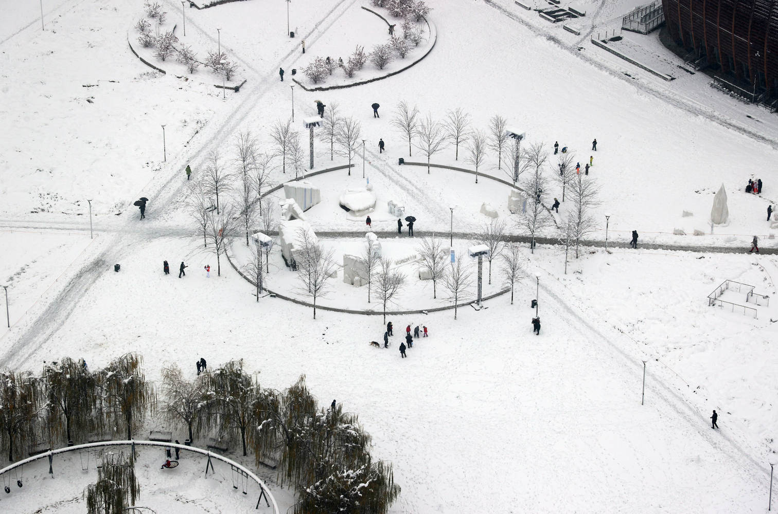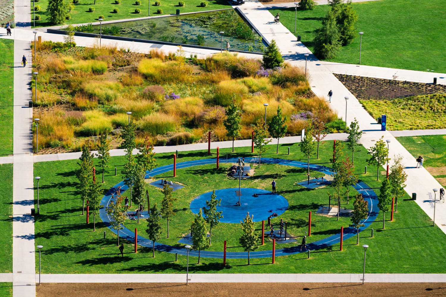 From the Second World War onwards, this park was an undeveloped brownfield site used for storing construction materials, temporary events, and annual circus performances—essentially chaotic. Due to its proximity to Garibaldi Station and being surrounded by busy traffic, the soil eventually became severely contaminated.