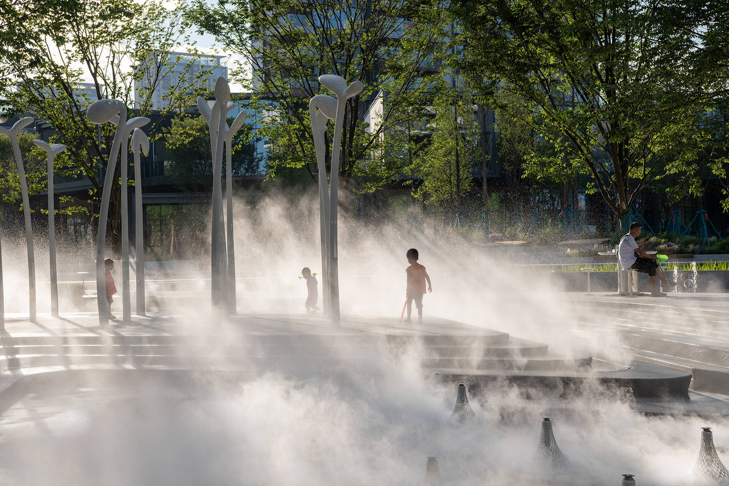 The design incorporates extensive ecological planting to create a verdant urban canyon. It also leverages the existing water advantages of the Luhu site to holistically consider and plan the water system, water usage, and filtration, ensuring that the completed waterscape minimizes water consumption and operates with maximum efficiency. The water volume in the water playground can be adjusted according to natural laws and seasonal changes, and the entire water interaction is controllable by time and zone. While serving as an activity space for residents, Waterline Park can also function as a rain garden during flood seasons to assist in the dredging of Luhu Lake.