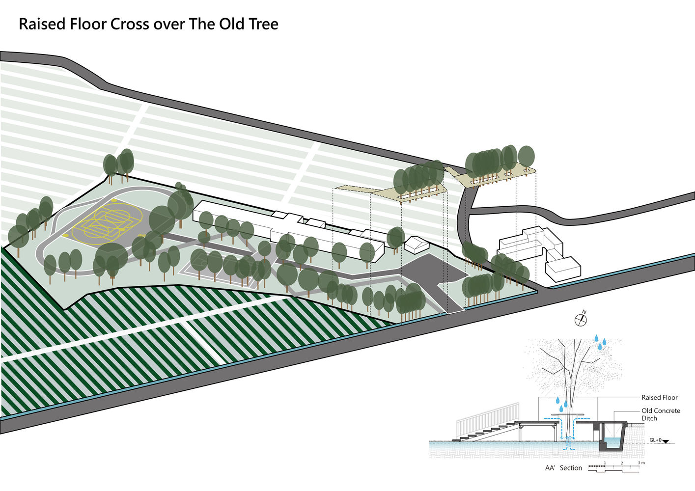 Preserving the lush trees on campus. We carefully planned the facilities and structural foundations, considering the original tree roots to allow the trees to remain.