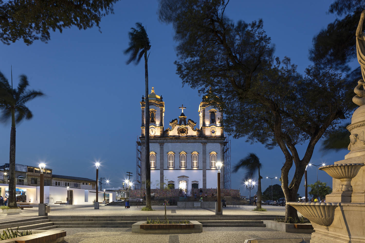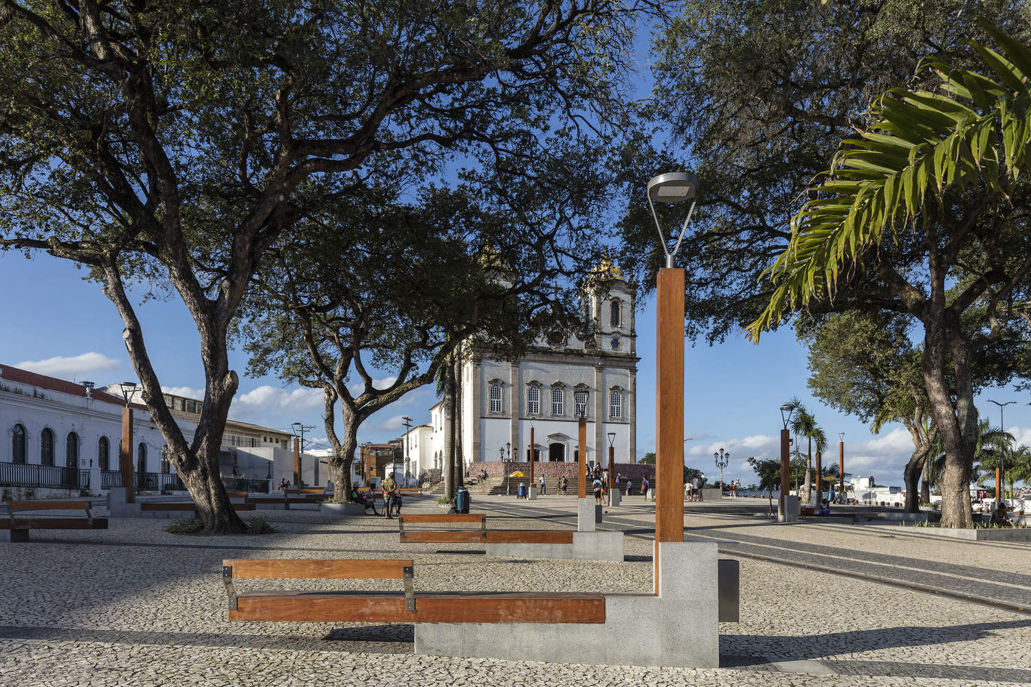 The "Senhor do Bonfim Urban Renovation" is one of the most significant urban space transformation projects in Salvador da Bahia. The project encompasses three squares: Praça Teodósio Rodrigues de Faria, Largo do Bonfim, and Praça Eusébio de Matos, covering a total area of 36,050 square meters. The site has a total elevation difference of 22 meters, and after the renovation, each level of the site has a different use. The top level is mainly dedicated to religious and cultural venues serving tourists, while the lowest level mainly provides retail, service, and leisure areas for the public.