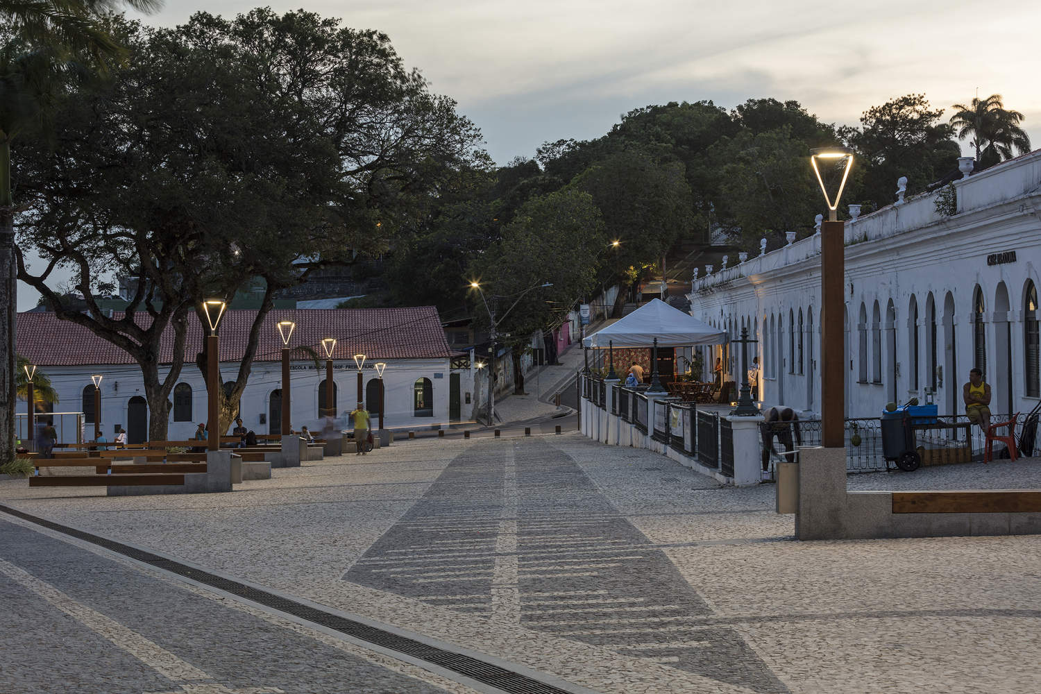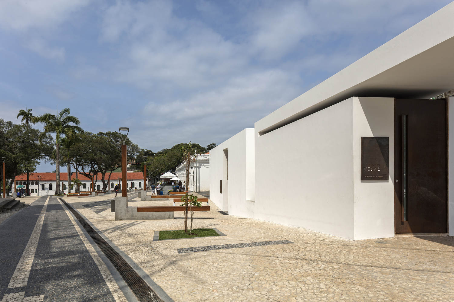 Materials also express the site's history, such as the parallelepiped and Portuguese stone flooring, with a striped combination of black and white stones, evoking the memory of cultural totems, also known as the “Bonfim measure.” It is approximately 45 cm and is used as a template in almost all projects.
