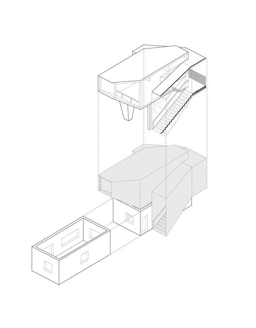 低干预策略下的“废屋再生”与时间缝隙:在有限的预算和对历史肌理尊重的前提下,建筑师采取了极具巧思的“低干扰”改造策略。尤其体现在对废弃保安室的再生设计中,通过保留其原有结构骨架,并以新结构(钢结构)在内部“生长”出二层艺术空间,并在新旧结构之间保留20公分的“时间缝隙”,让光线渗透。这种处理方式,既赋予了旧建筑新生,又清晰地标注了新旧介入的时间层次,是对现有存量建筑进行有尊严、有情感的微创手术式干预的典范。