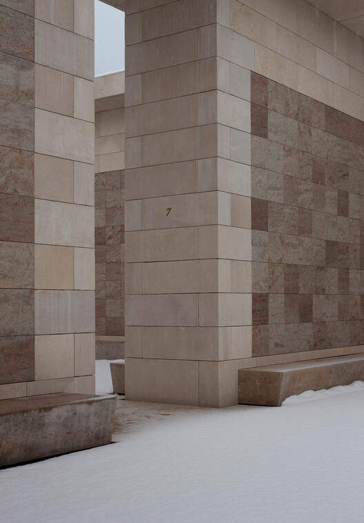 这个项目位于公墓的中心,是一个被小型墓群包围的户外骨灰室。8 个放置骨灰的结构被坐落在 2 个院落之间,以帮助人们适应观察和放松。通过使用陌生的进口石材创造一个熟悉的规模空间,旨在营造出亲密却生疏的印象。
