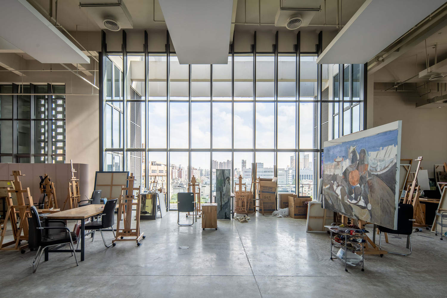 The diverse height requirements of various disciplines of the Art College are addressed through a split-level layout, which integrates interconnected atria, grand staircases, and ramps to create a gallery-like circulation path within the building. The design not only resolves functional height disparities but also fosters an interactive layered environment that encourages collaborative learning and creative researching.