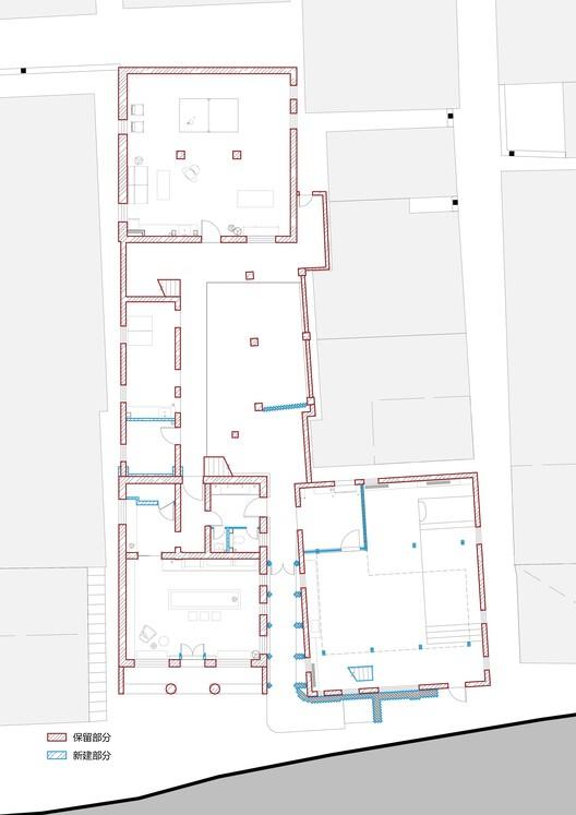 经过对每幢建筑详细的测绘以及结构检测,依据历史风貌价值评估和未来使用的可能性,设计团队针对现存各建筑制定了不同的修复与改造策略。其中历史建筑的外观要恢复到哪个历史时期非常重要。是查询历史资料恢复到其刚建成时的原始外观,还是保留其使用过程中产生的各种痕迹?在这个项目中,建筑师在大部分的区域选择了后者,仅对安全性出现问题的部位进行了修复和调整。