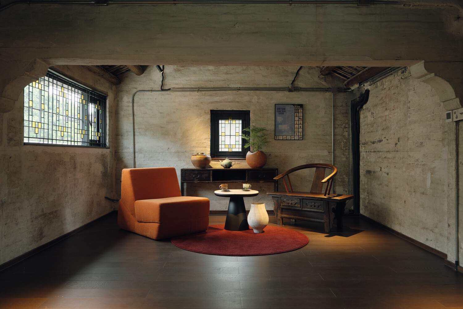 修旧如旧与主题线索的有机融合:该项目最大的亮点在于其“整体修旧如旧、局部微更新”的改造策略。建筑师成功地在保留原有街区百年历史风貌和丰富历史印迹的基础上,植入了以“陶”为主题的空间线索。这种处理方式既是对历史文脉的尊重和延续,避免了过度干预带来的割裂感,又通过主题元素的植入,明确了文化艺术中心的身份和参观体验路径,实现了历史保护与当代功能活化的有机统一。