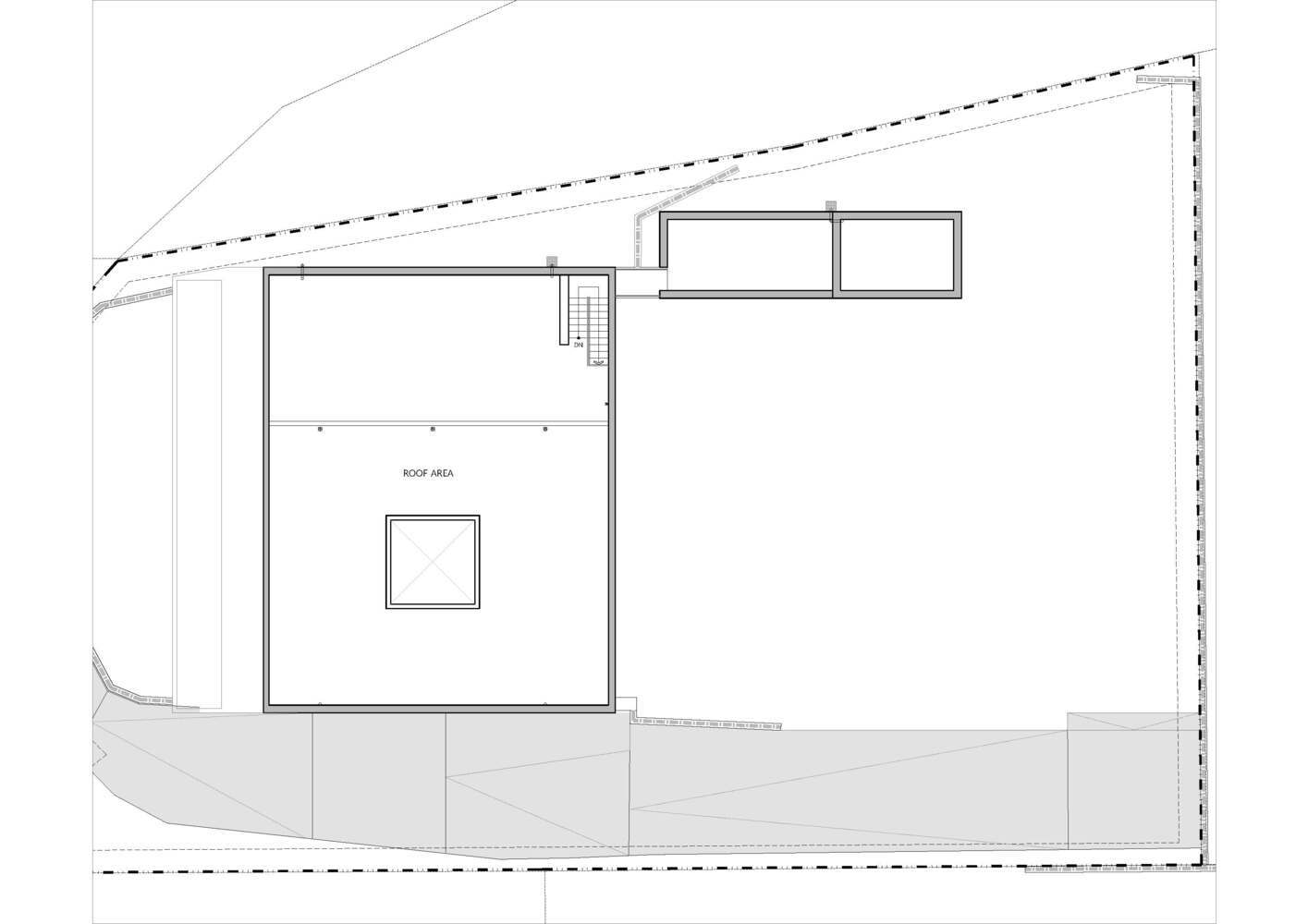 The architects hoped that visitors coming to TRIVIUM, a place carrying the owner's long-held desires, could clear their complex minds during their visit, or conversely, enrich their thoughts. Throughout the entire design phase of the project, the process of filling the building with structure and then emptying it to integrate nature was a challenging task, and it remains difficult to define the future expectations for TRIVIUM, much like the nature of light.屋顶平面图