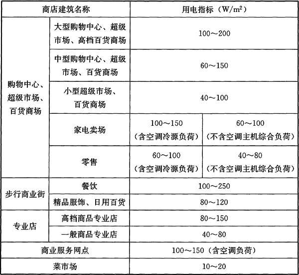 3.4.3 商店建筑中对供电指标有特定要求的零售业态,可按实际需求确定。