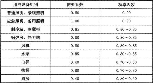表1 商店建筑用电设备负荷需要系数及功率因数推荐表
