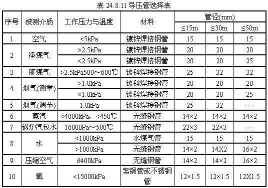 24.8.11导压管材质和规格的选择,应符合表24.8.11的规定。