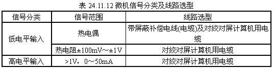 24.9.5微弱信号及低电平信号,特别是要求抗干扰的信号(如计算机),不应与强电回路合用一根电缆或敷设在同一根保护导管内。但在同一安装单位中,对测量精度影响小的DDZ~Ⅱ型蛮送器、远方操作器、带位置指示的电动门等弱电信号,可与其电源合用一根电缆。