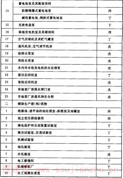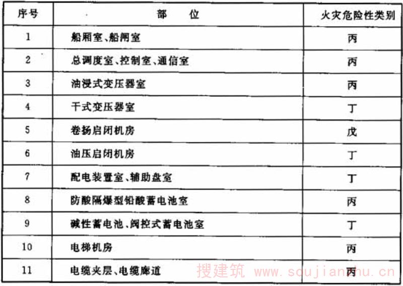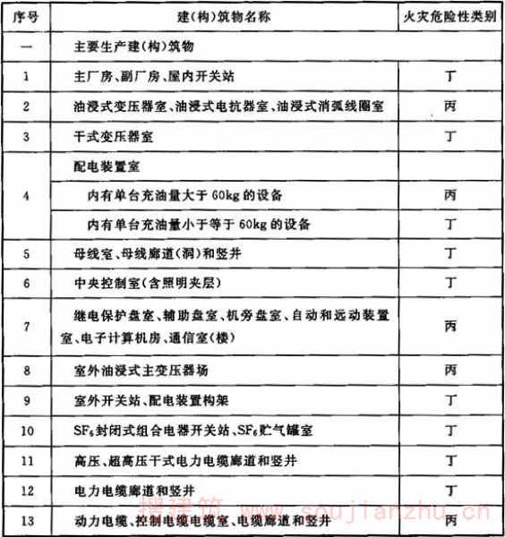 3.0.1 水电工程生产的火灾危险性分类应符合现行国家标准《建筑设计防火规范》GB 50016的有关规定。建(构)筑物的火灾危险性类别应符合表3.0.1的规定。