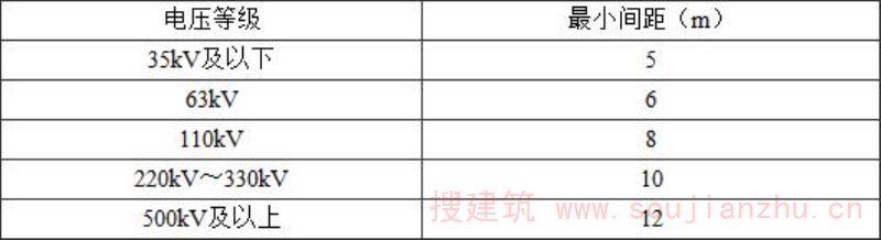 4.0.3油浸式变压器在运行中可能因电气事故产生电弧,有导致燃烧或爆裂的可能。万一发生火灾事故,不但其本身会遭到破坏,而且会蔓延扩大以致全厂停电。本条规定主要根据现行国家标准《建筑设计防火规范》GB50016和《火力发电厂与变电站设计防火规范》GB50229中室外变压器与建筑物之间的防火间距要求确定。 本条中室外油浸式变压器与绝缘油、透平油露天油罐的防火间距是根据现行国家标准《建筑设计防火规范》GB50016中室外变压器对丙类液体储罐的防火间距要求确定的。露天油罐总储量(V)按5m3≤V<250m3和250m3≤V<1000m3分级。因为绝缘油的闪点约为130℃,透平油的闪点为180℃,均高于120℃。按《建筑设计防火规范》GB50016-2006第4.2.1条的规定,防火间距可减少25%。