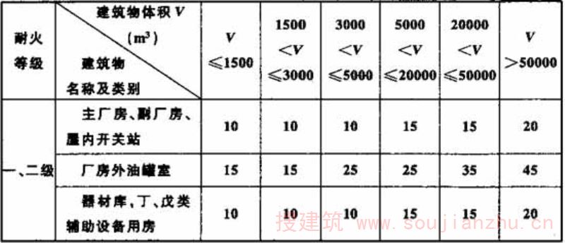 注:当设有自动灭火系统时,主、副厂房及其他建筑的防火间距可较表中间距减少2m。