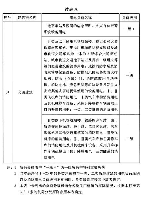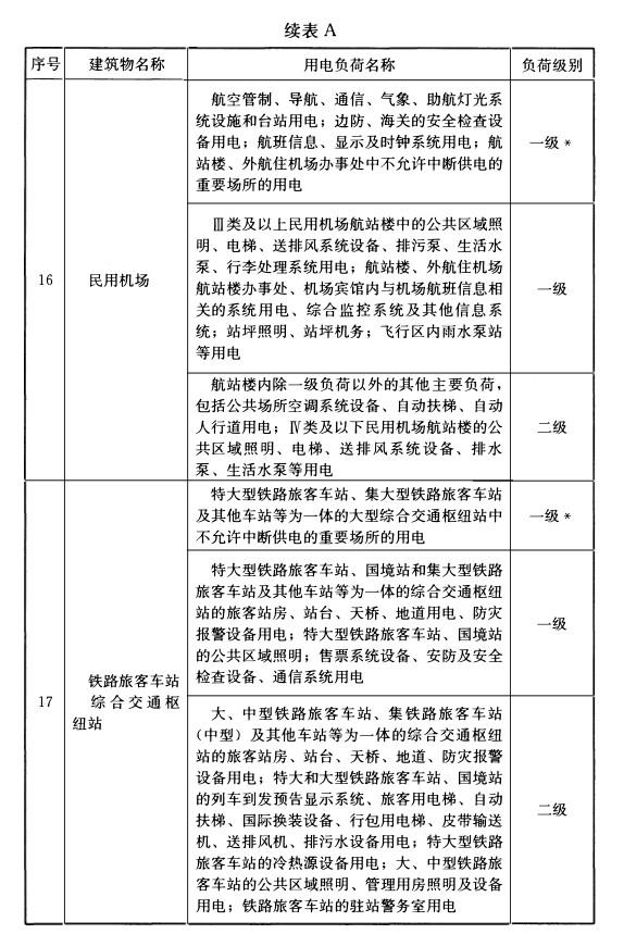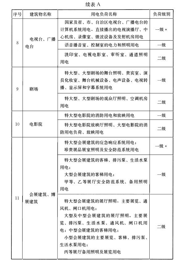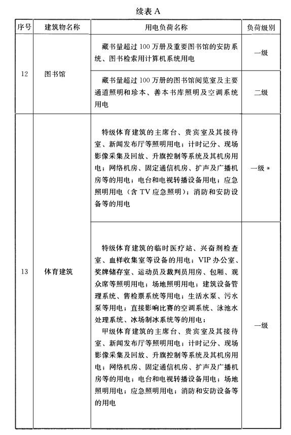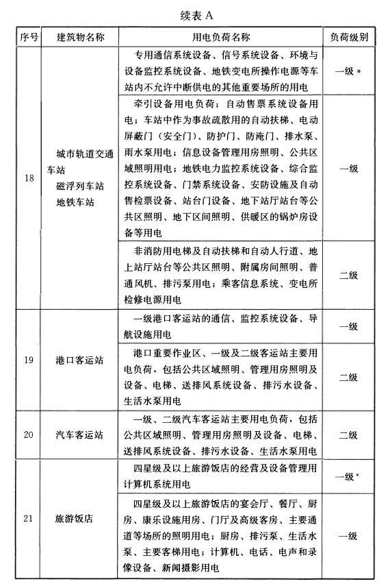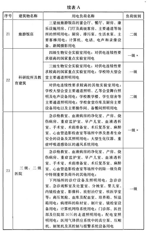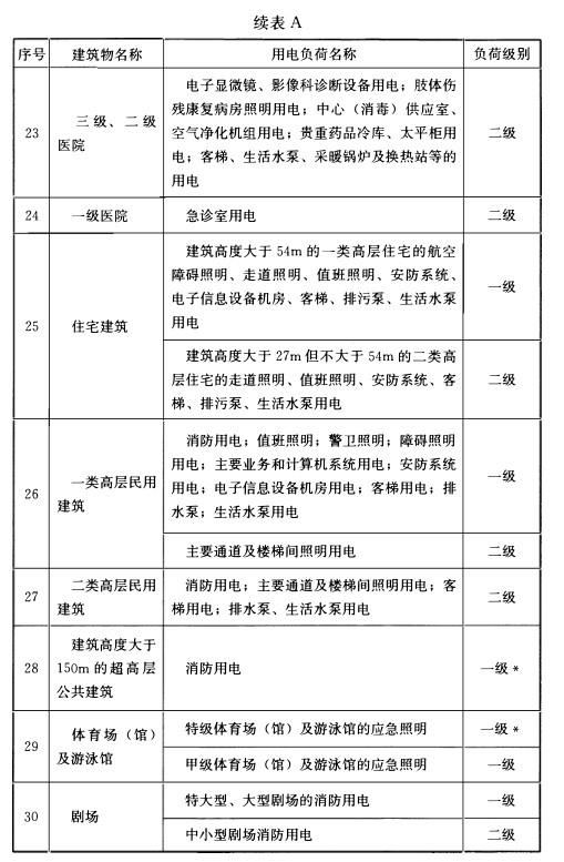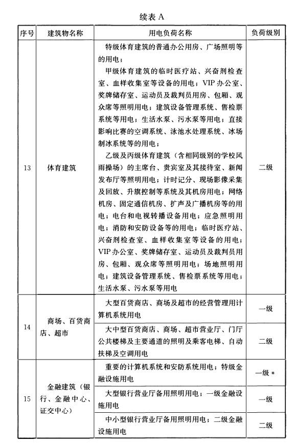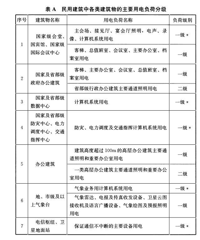 附录A 民用建筑中各类建筑物的主要用电负荷分级