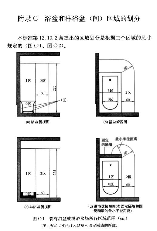 附录C 浴盆和淋浴盆(间)区域的划分