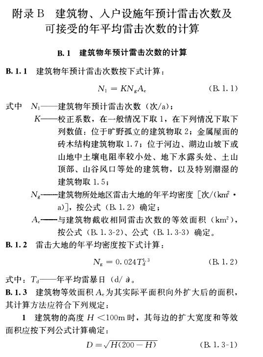 附录B 建筑物、入户设施年预计雷击次数及可接受的年平均雷击次数的计算