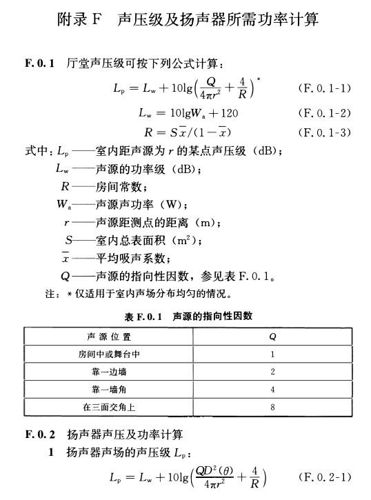 附录F 声压级及扬声器所需功率计算