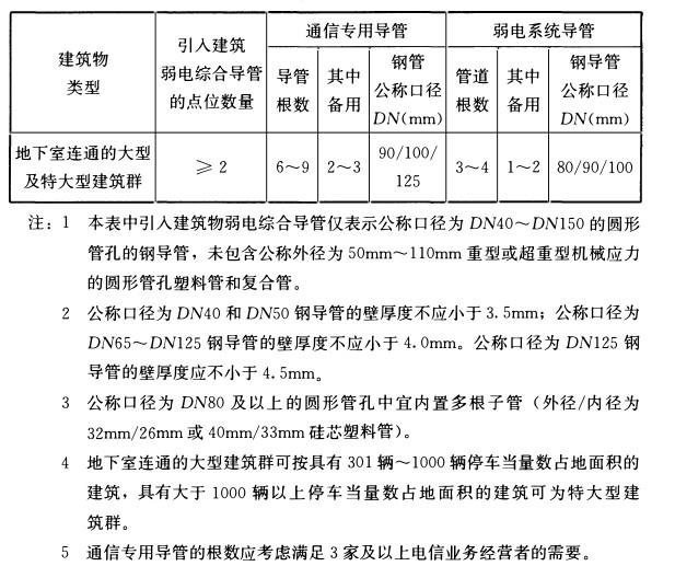 1竖向槽盒的规格、导管的管径及数量应满足弱电各系统主干线缆远期发展的需求;