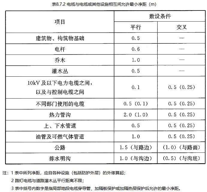 26.5.19弱电配线管网与附近可能产生高电平电磁干扰的电动机、电力变压器、射频应用设备等电器设备之间应保持必要的间距。弱电线缆与电力电缆的间距应符合表26.5.19的规定