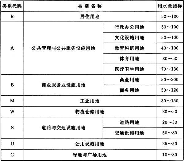 3 超出本表的其他各类建设用地的用水量指标可根据所在城市具体情况确定。