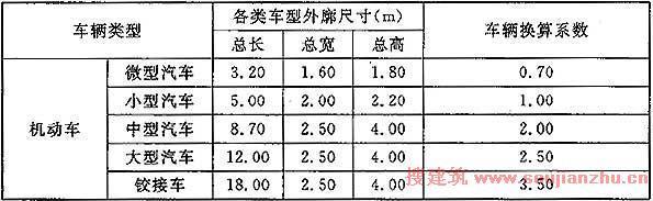 附表1 停车场(库)设计车型外廓尺寸和换算系数